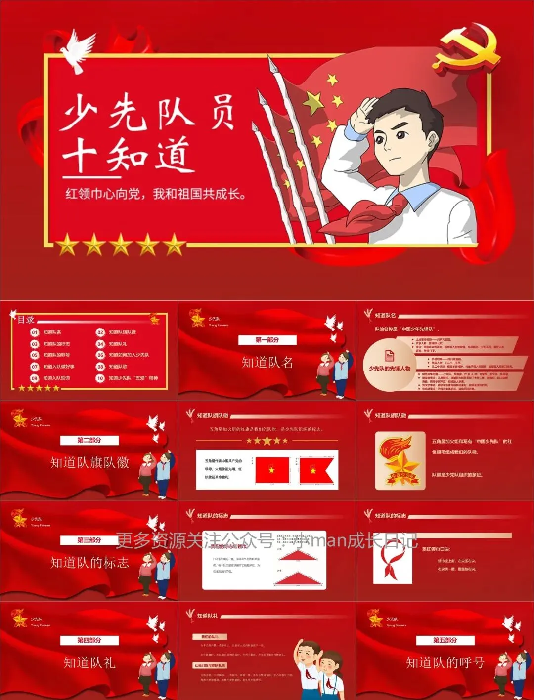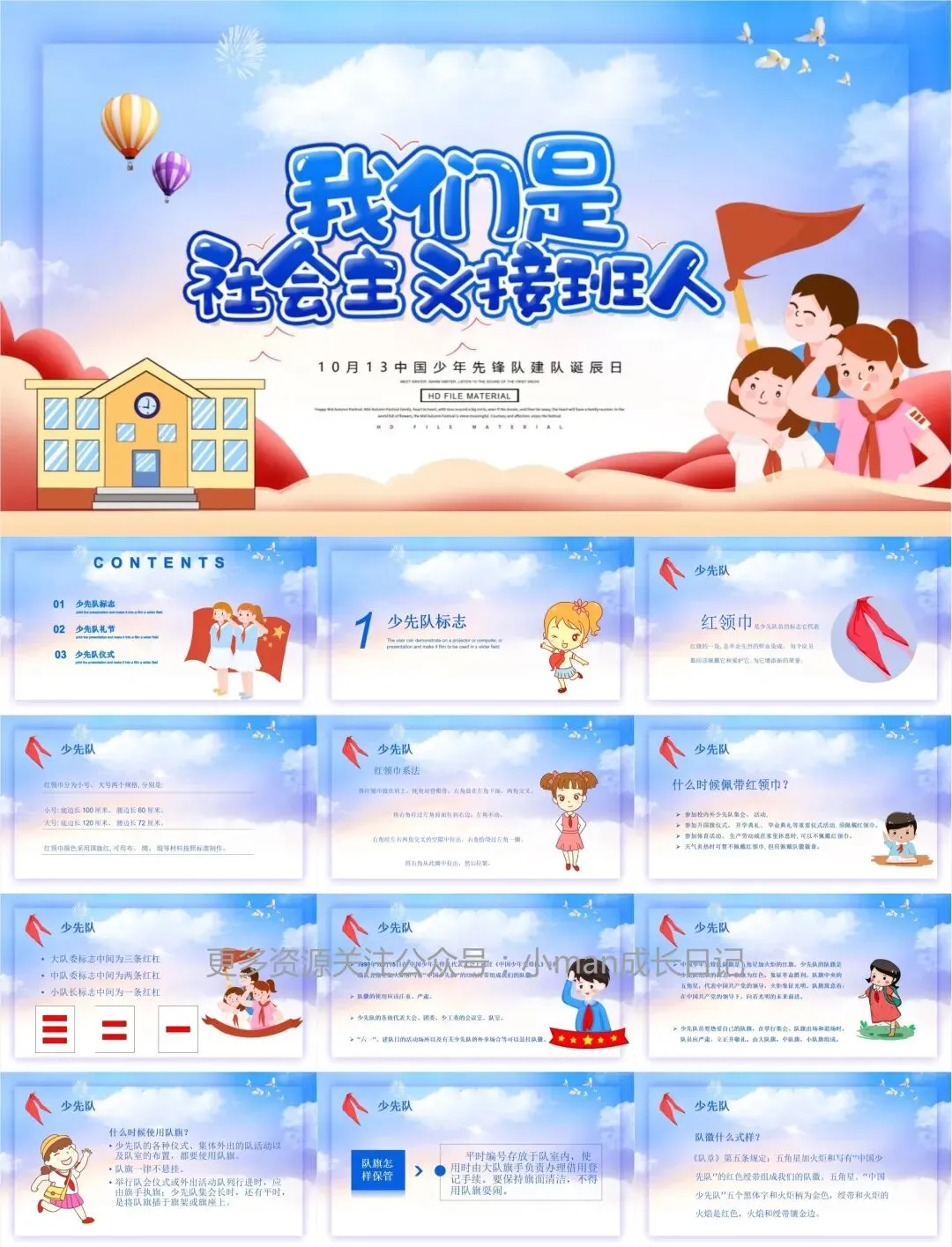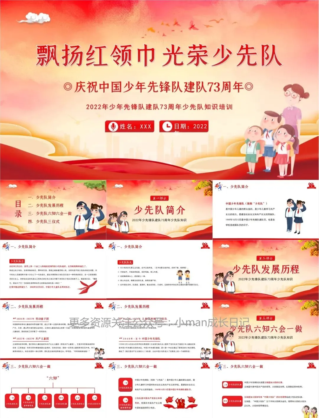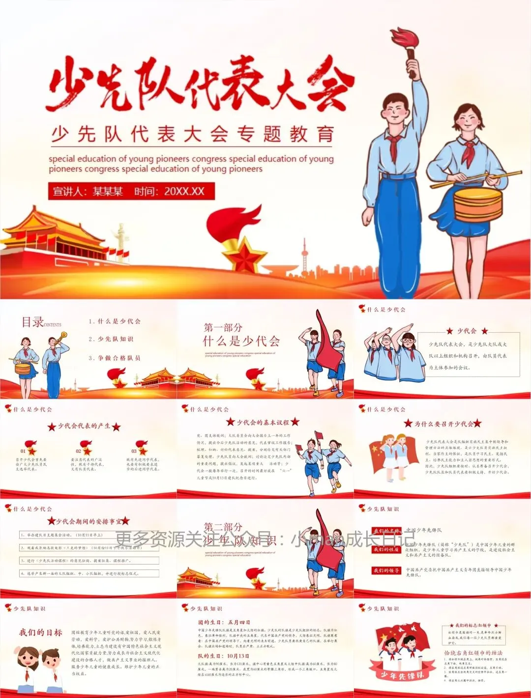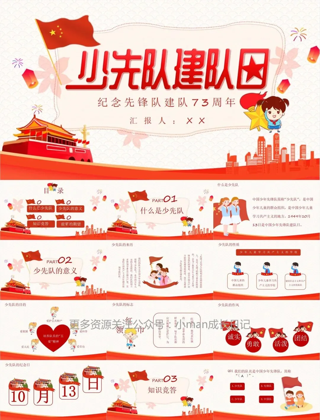 从队课学习到主题活动,从红色宣讲到成长仪式,这套【少先队专属PPT智库】用53种童趣设计,将政治启蒙的种子化作生动画面——您的每一次点击,都在为孩子们系好人生第一粒扣子。