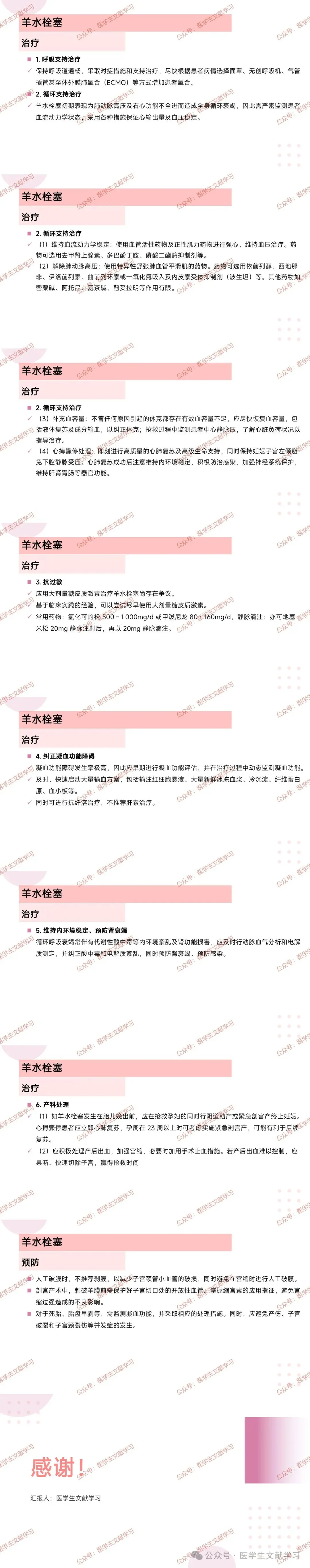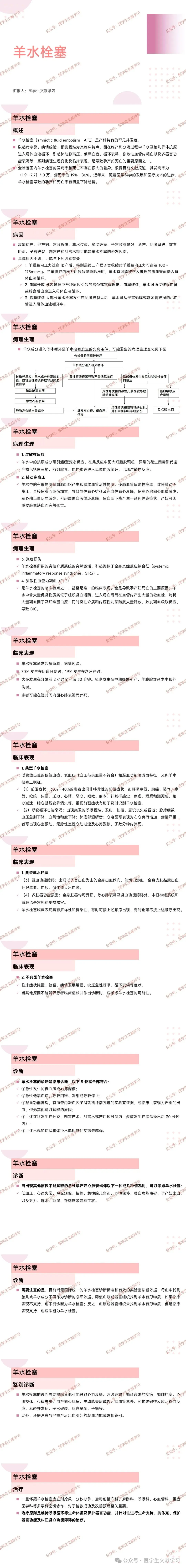 诱发因素:高龄初产、经产妇等多种情况可能诱发,具体原因不明,可能与羊膜腔内压力过高、血窦开放、胎膜破裂使羊水进入母体循环有关。