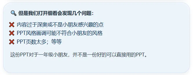 等等,这份PPT对于一年级小朋友,并不是一份好的可以直接用的PPT。