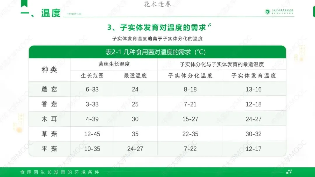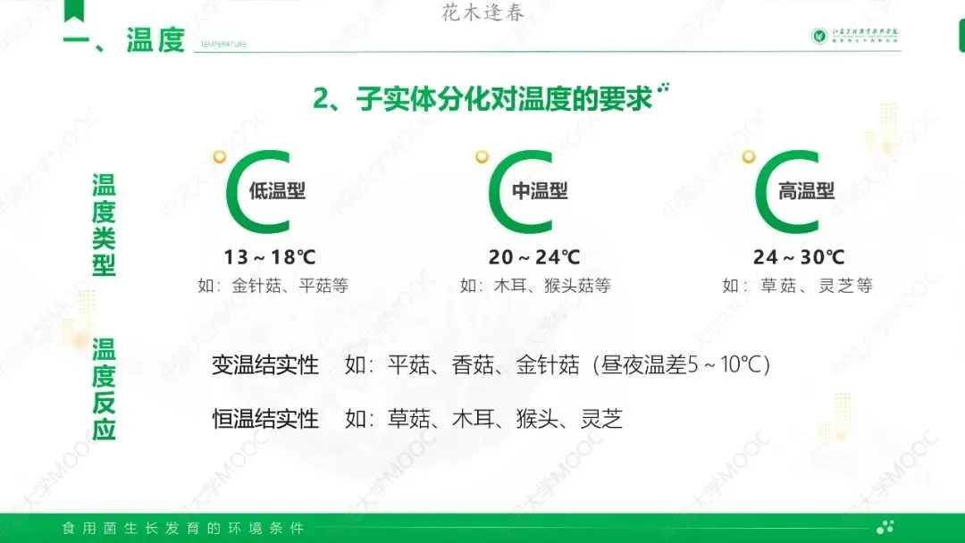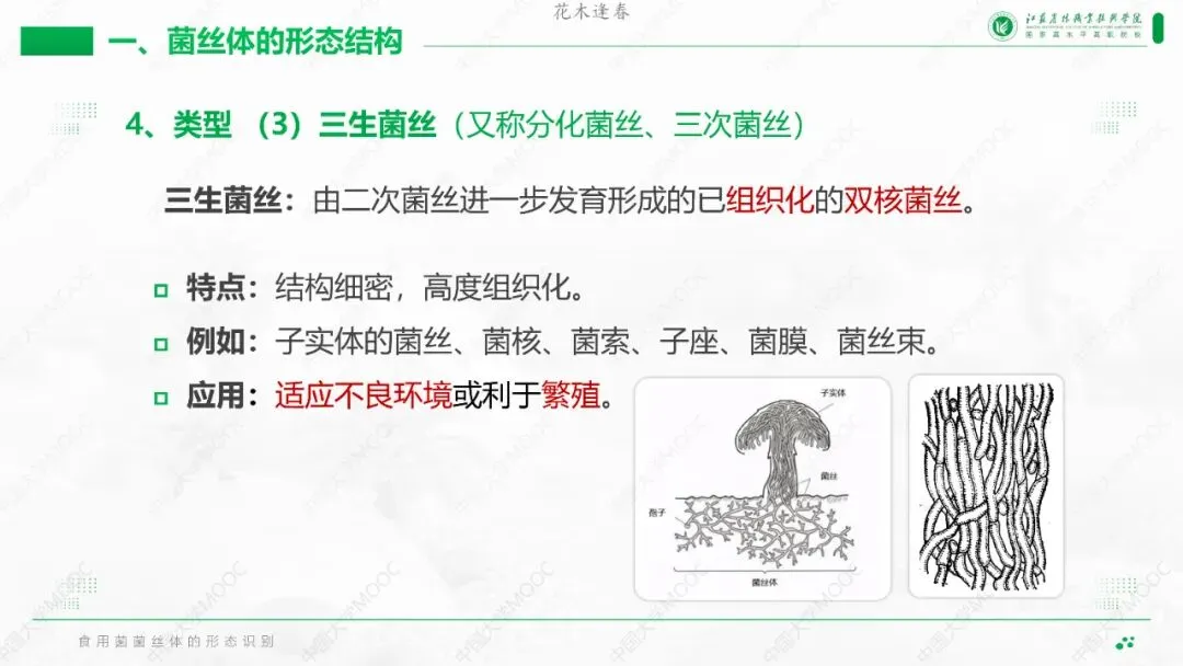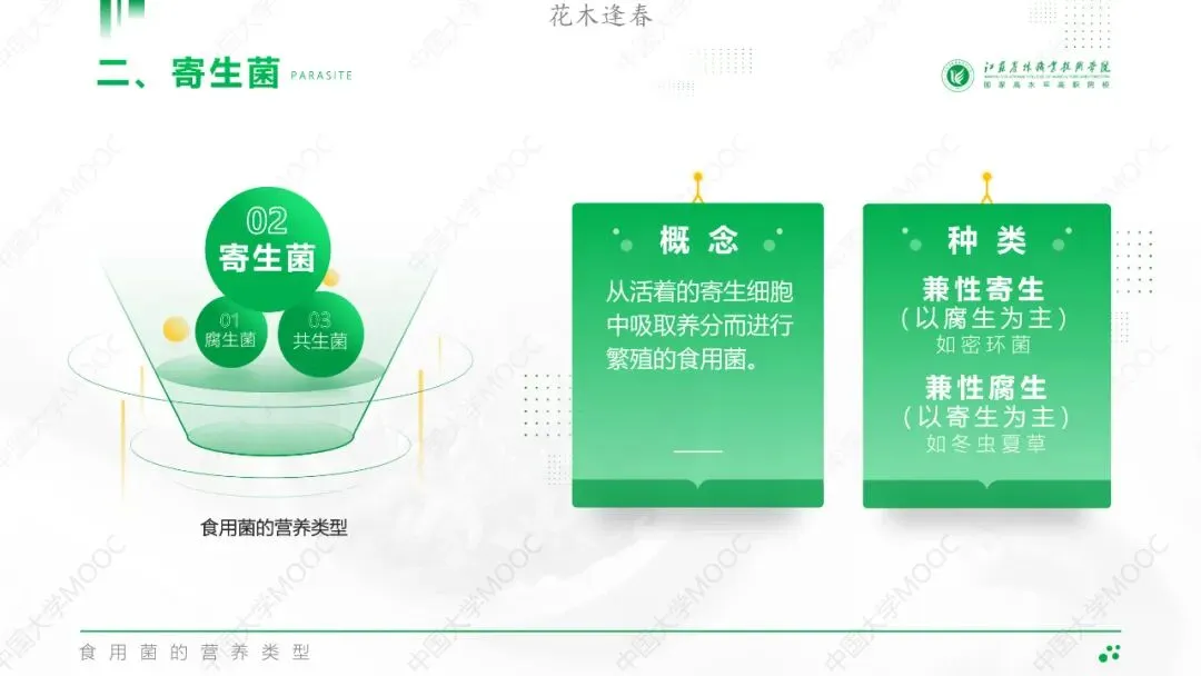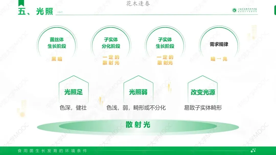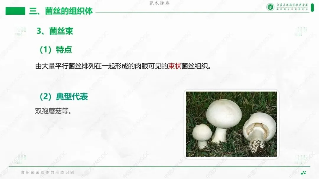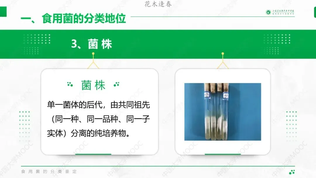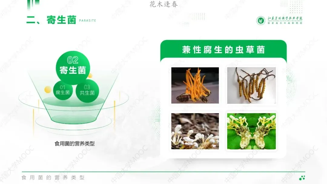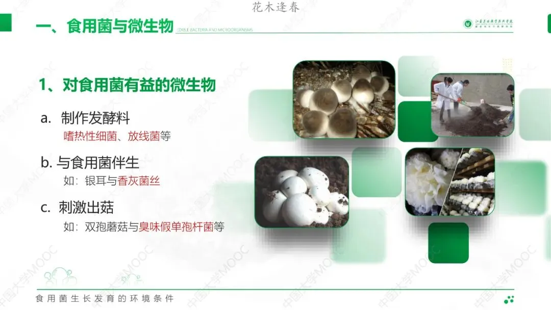 《食用菌生产技术》是农业生物技术专业的一门专业核心课程。随着人们对菌类食品营养保健功能认识的提高,食用菌产业发展十分迅速,目前已成为振兴农村经济的支柱产业,成为农村产业结构调整的重要组成部分,是促进社会主义新农村建设的有效途径。 课程主要围绕学生对食用菌种类识别、菌种生产、栽培管理、产品保鲜加工等技术能力培养的需要,力求通俗易懂,突出实用性、针对性、简明性和实效性。通过理论教学和实践操作视频,使学员对现代食用菌产业化生产技术有全面的了解,并能在今后的生产实践中灵活运用,以达到提高学员生产操作技术能力和综合分析问题、解决问题能力的教学目标。声明:本资料来源于公开课,依法合规获取,作者为江苏农林职业技术学院《食用菌生产技术》教研团队,版权归原作者所有。内容部分呈现,仅供学习参考,严禁用于其他用途。如有侵犯您的权益或版权,请联系删除。