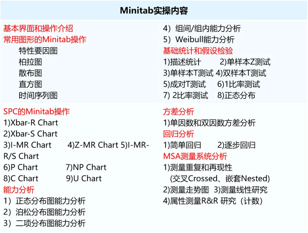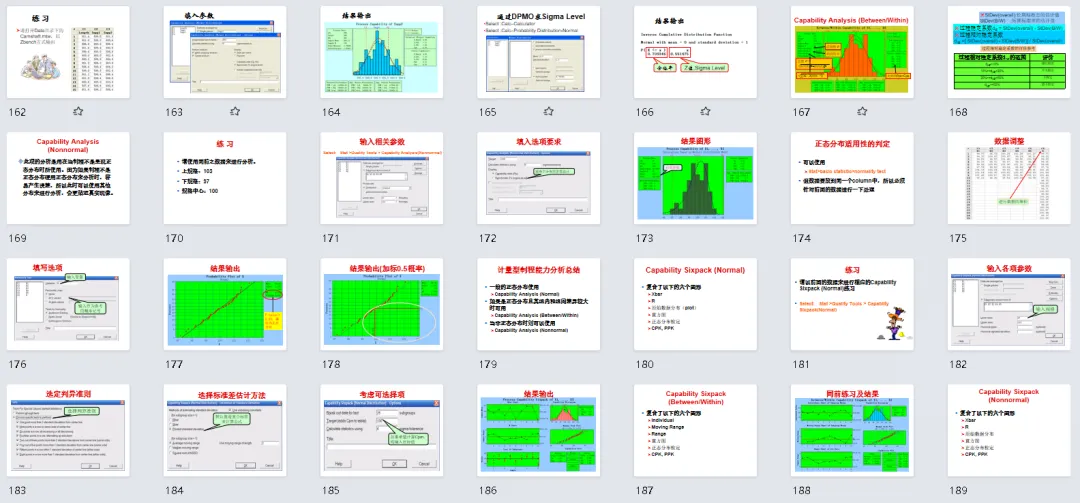分享一个利用minitab操作的方法,里面包含以下内容,足够应用。由于内容570页PPT,如需要请到文章下方获取。