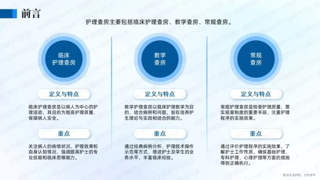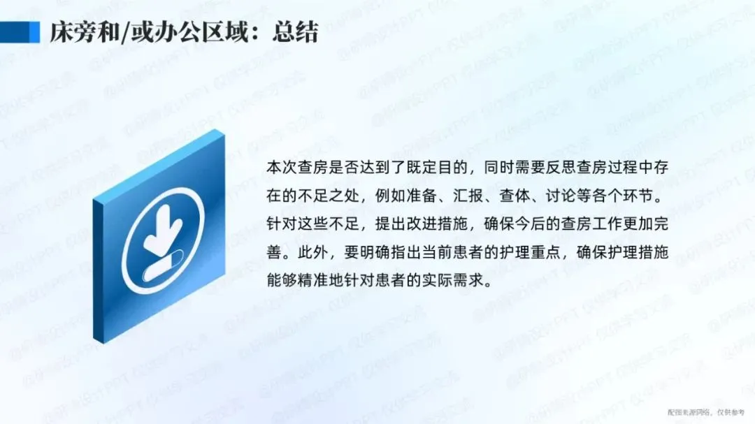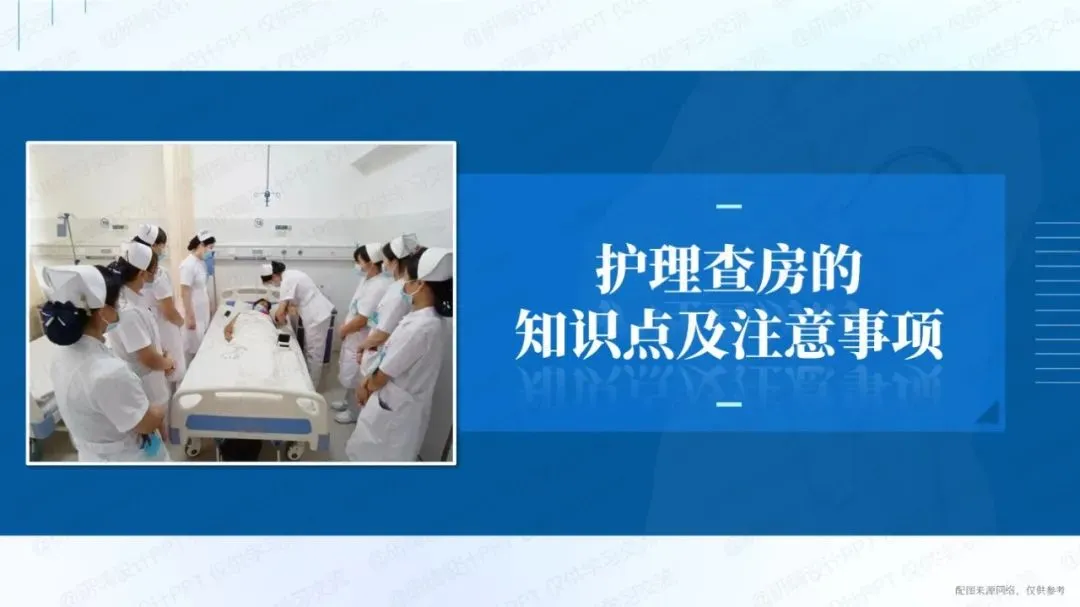 本次知识分享到此结束。护理查房在临床工作中是不可或缺的汇报环节,其中包含诸多知识点。不仅要全面且详细地了解患者病情,还要深入思考怎样为患者提供更优质的护理服务。尽管护理查房是日常常规工作,却容不得丝毫马虎,必须认真对待。此外,在汇报过程中,需将患者权益放在首位,切实保护好患者隐私。
