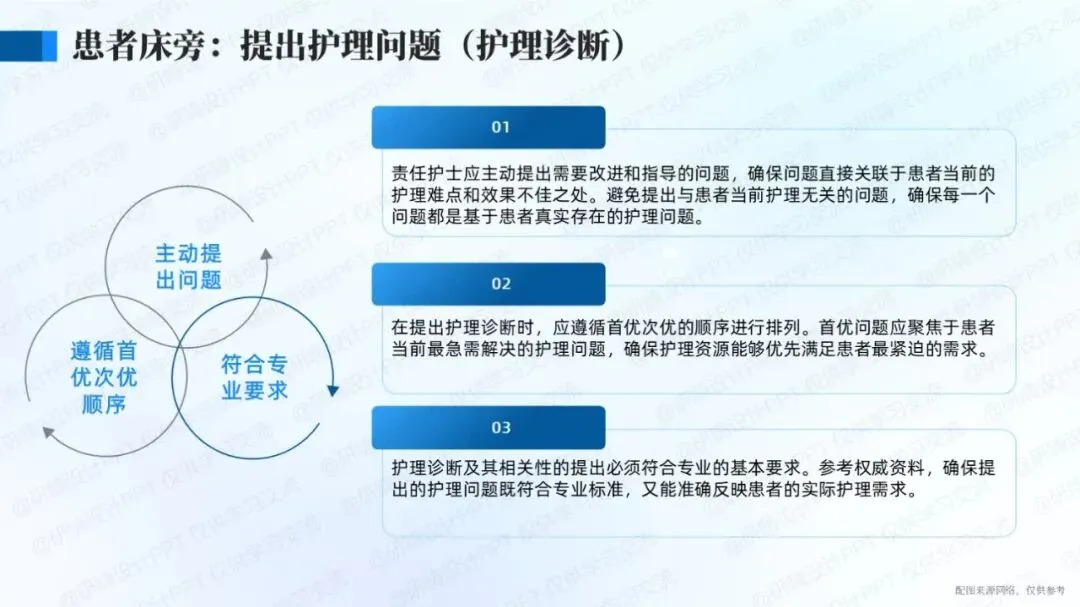 责任护士需主动提出亟待改进与指导的问题,所提问题务必紧密围绕患者当下的护理难点以及成效欠佳之处,切不可提出与患者当前护理无关的问题,保证每个问题均源自患者实际存在的护理问题。
