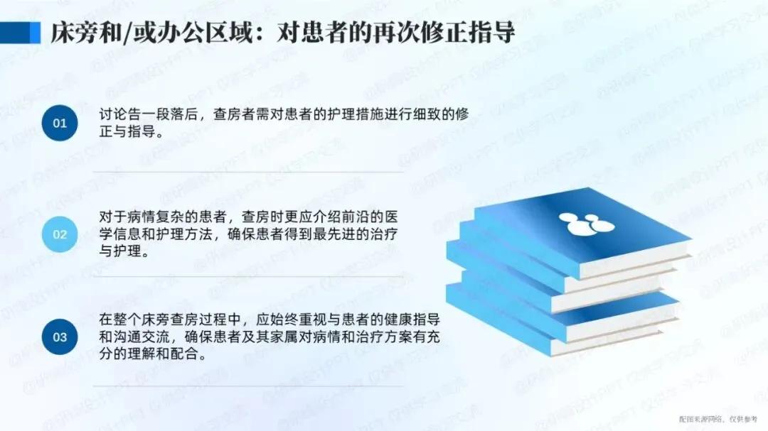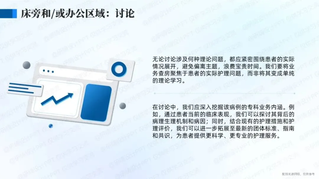 无论讨论涉及何种理论问题,均需紧密贴合患者实际情况,防止偏离主题,造成时间浪费。业务查房应专注于患者的实际护理问题,而非沦为纯粹的理论学习。