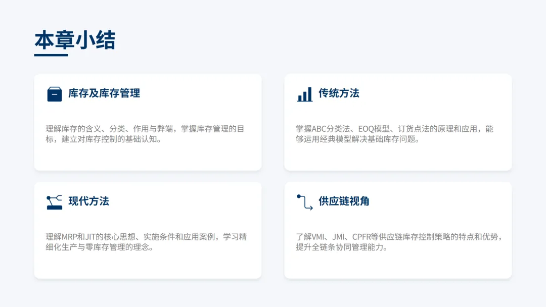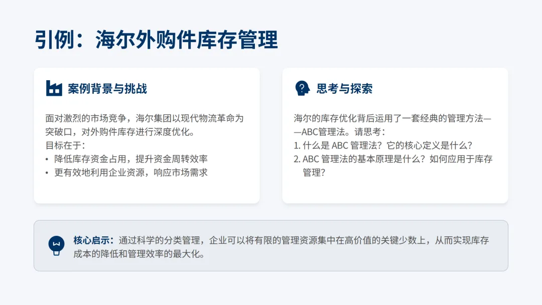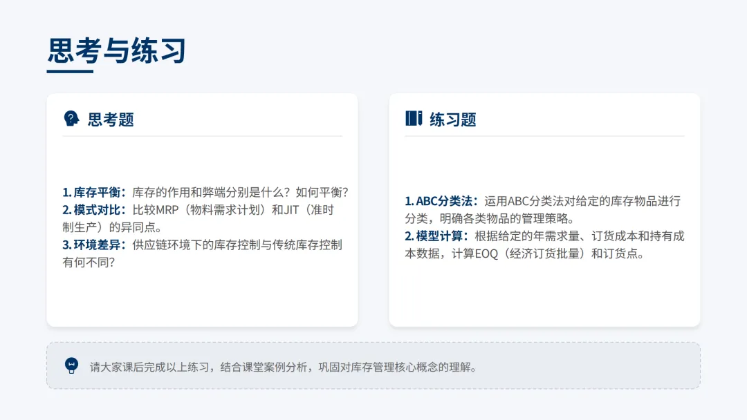📘 案例与练习:海尔外购件管理、丰田生产方式(TPS)等经典案例,配有思考题与计算练习