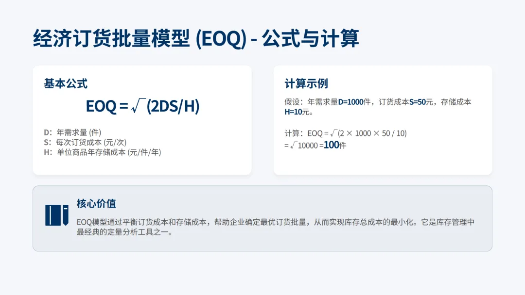 📊 传统控制方法:ABC分类法、经济订货批量模型(EOQ)、订货点法的原理与实操