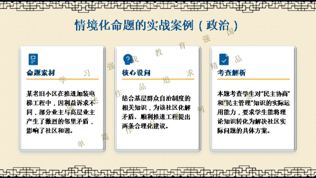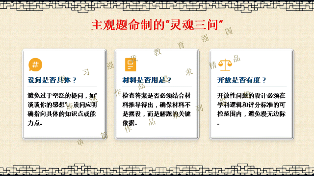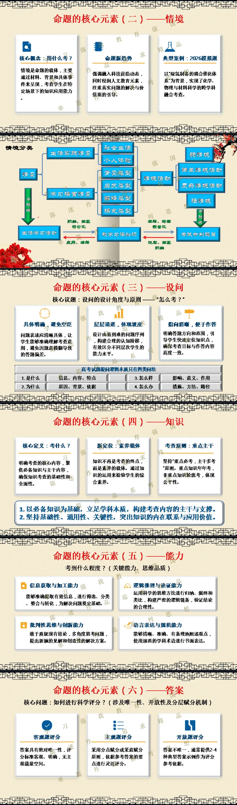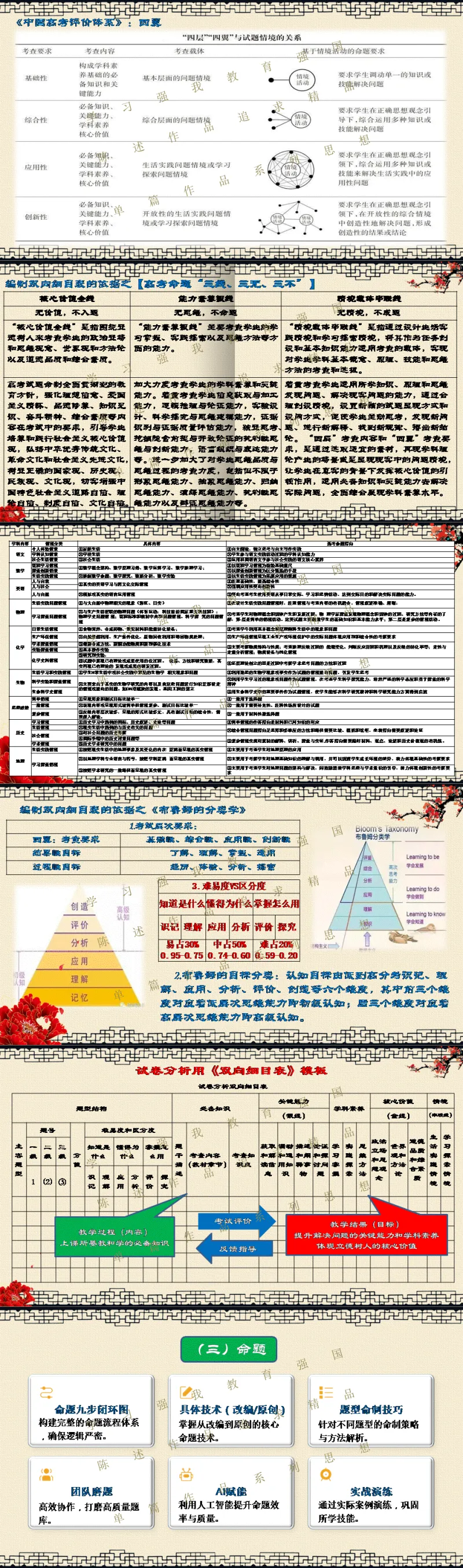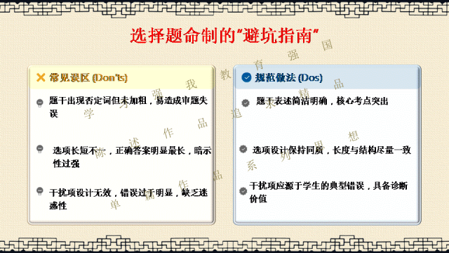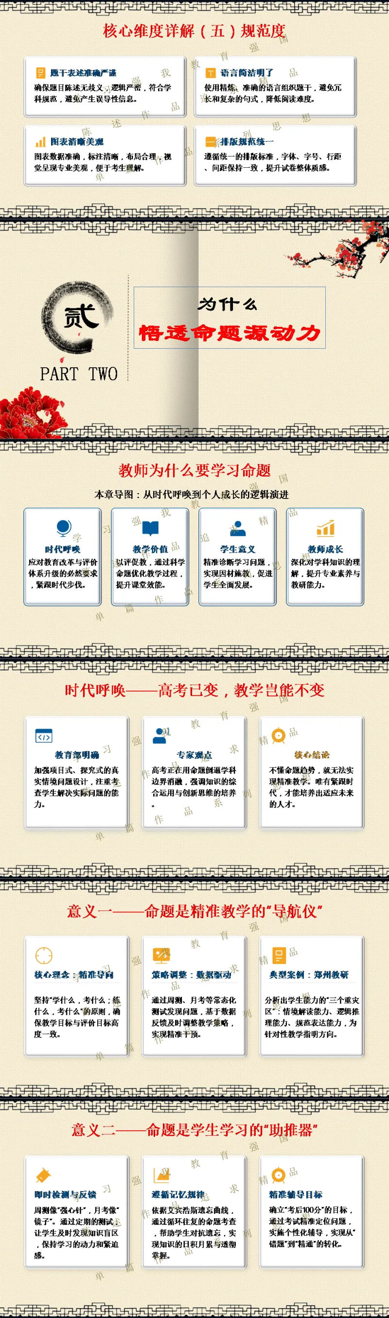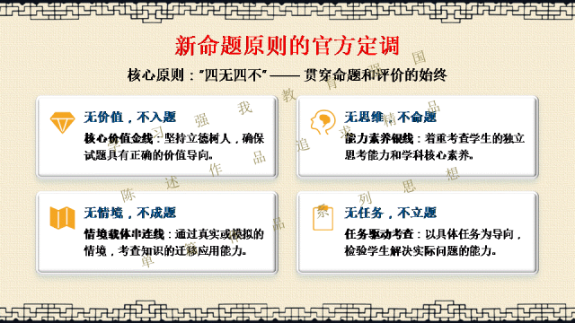 选择关注,关注陈述教学公众号,能力会提高。文末阅读一线校长更多原创内容。阅读提示:当2026年高考命题明确要求“融入科技前沿动态”,当数学试卷题干字数五年翻倍,当化学图表增至18幅以上——我们猛然发现:刷题时代,真的结束了! 本讲座专为渴望突破教学瓶颈的初高中教师设计,深度解读教育部最新命题风向,系统拆解从“困于题海”到“立于山巅”最后"走向命题人"的教师专业进阶路径。本讲座并非一般讲座只讲命题技术,而是与专业成长深度融合,更能引起教师学习的情感共鸣。无论您是希望告别“剪贴拼凑”的一线教师,还是需要组织命题工作的教研骨干,都能在这场讲座中掌握如何制定双向细目表、遵循九步命题法、情境化设计等实战利器。《解题者困于题海,命题人立于山巅》——让我们一同完成从“解题者”到“命题人”的专业蜕变,在考试改革的浪潮中,赢得属于教师的专业尊严。若需原汁原味的具有动画音响功能的原版电子版PPT课件,请阅读到课件文末说明。线上线下讲座预定请联系陈述校长19946913958(微信同号)。