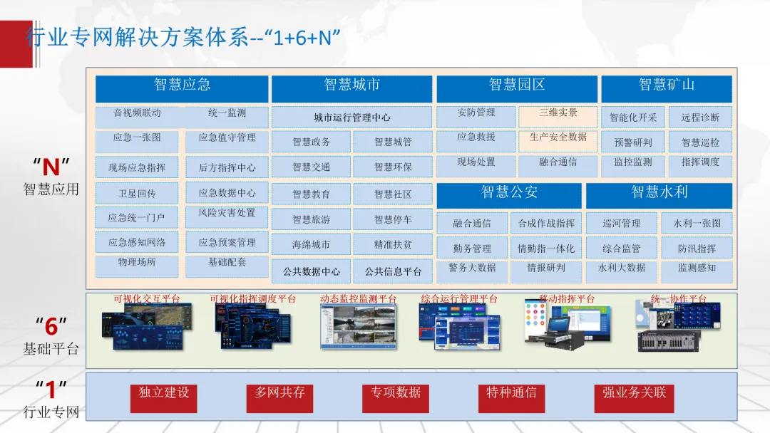 智慧应急指挥平台1+6+N体系,是一个集行业专网、基础平台、智慧应用于一体的综合解决方案。它像是一辆装备精良的“应急战车”,载着应急管理的未来,驶向更加安全、智慧的城市。