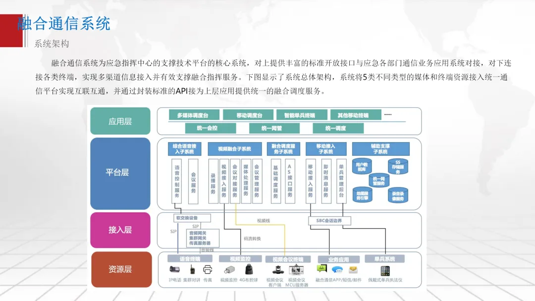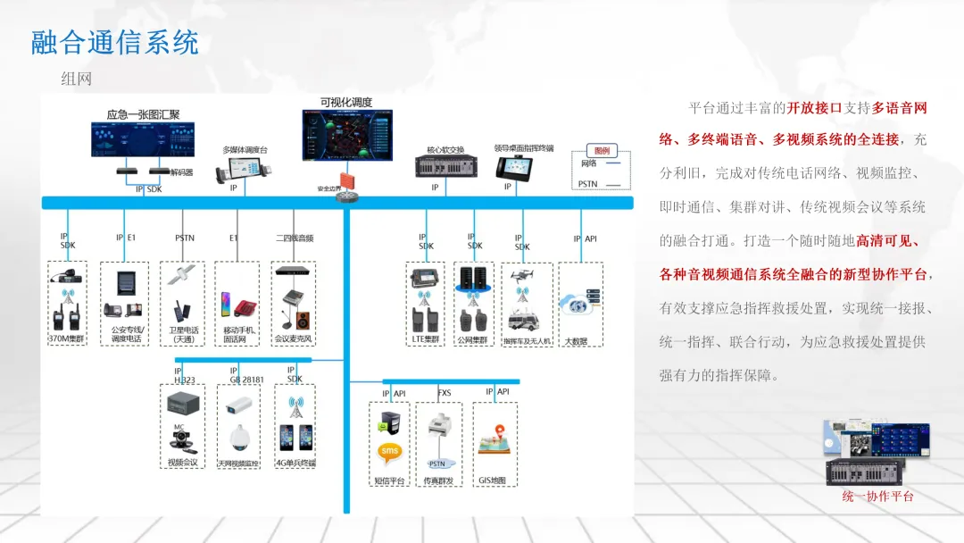 在智慧应急指挥平台1+6+N体系中,融合通信系统扮演着至关重要的角色。它像是一条“超级纽带”,将应急指挥的各个环节紧密连接在一起。