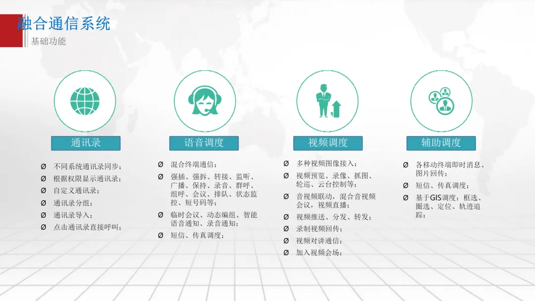 融合通信系统还实现了内部通信、公众通信、应急通信、GIS系统、应急系统等多种业务的融合。这意味着,在应急指挥过程中,可以随时随地调用各种资源,实现应急指挥的全方位覆盖。