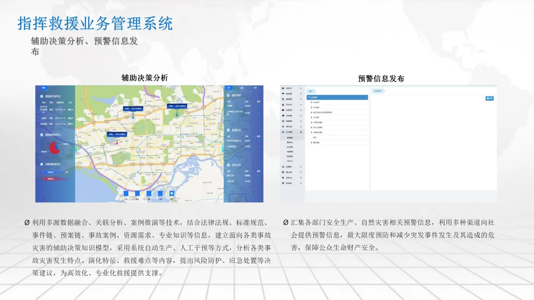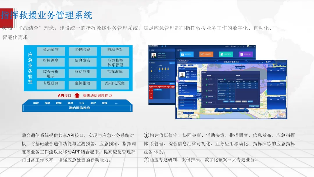 - 综合运行管理平台:整合应急管理各项业务,实现应急管理的系统化、信息化。