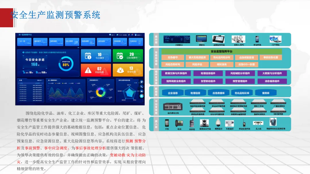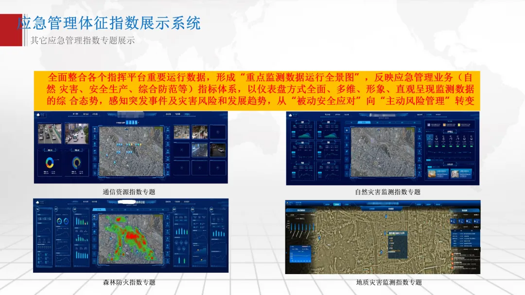 - 动态监控监测平台:实时监测应急数据,及时发现潜在风险,为应急指挥提供预警。