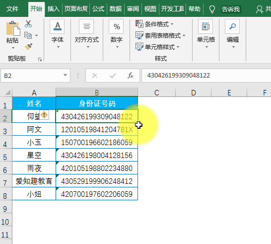 身份证号码的第7-14位为出生年月日,下面通过分列功能来快速提取。