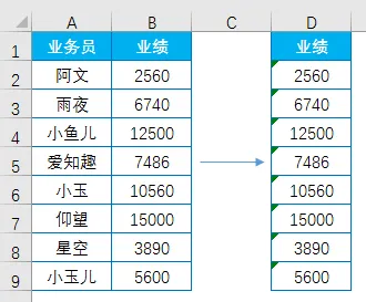 如下图B列带绿帽的数据都是文本型数字,不能直接参与计算,比如用SUM函数对其求和时结果会显示为0,该怎么转换为数值呢?