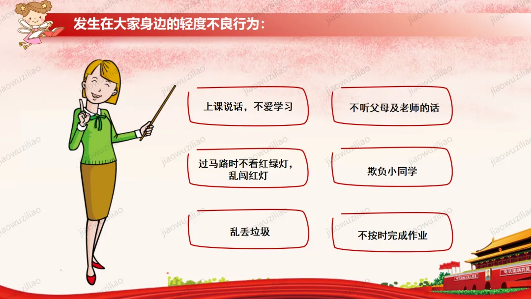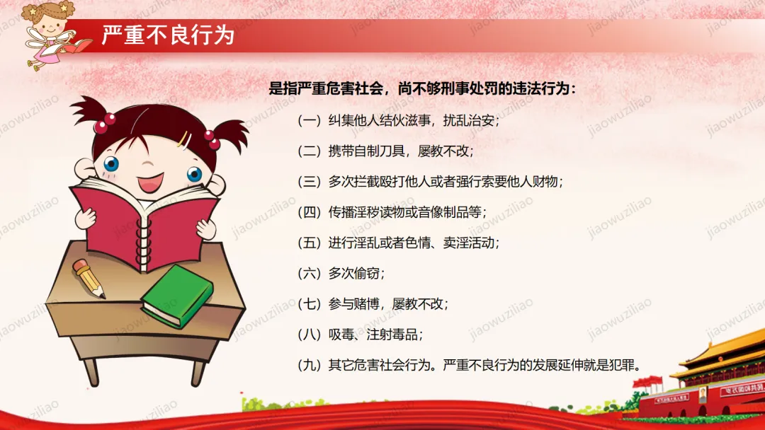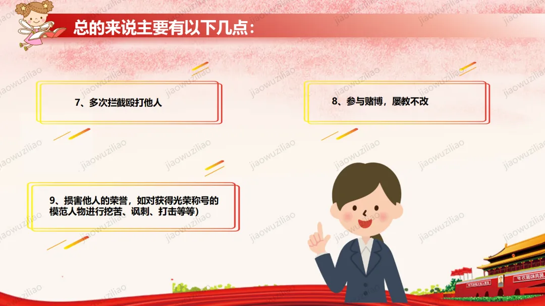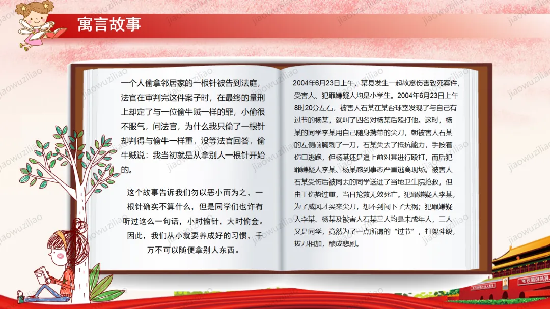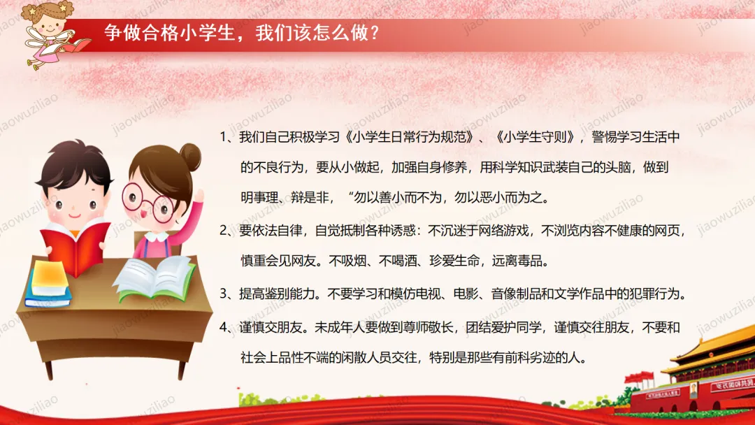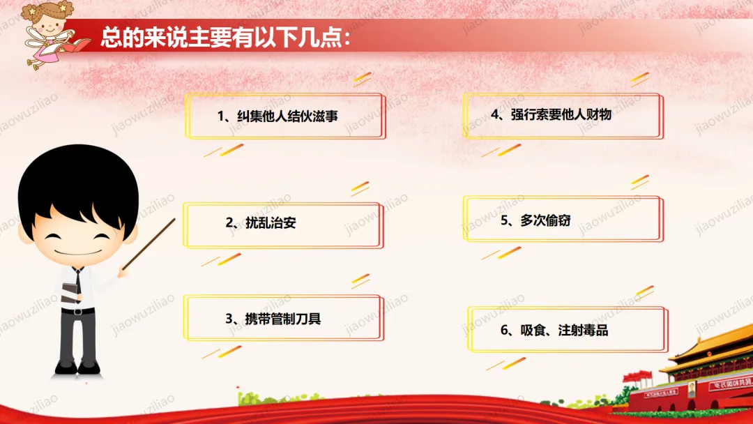 法律是我们成长路上的 “安全卫士”。作为未成年人,我们要从小树立法治意识,遵守校规校纪,知晓基本法律常识。不打架、不欺凌、不沉迷网络,不做危险违法的事。遇到侵害和困难时,及时告诉家长和老师,学会用法律保护自己。争做知法、懂法、守法、用法的新时代好少年。如果您对这篇课件感兴趣,文末有课件的获取方式(PPT无水印,可编辑修改)关注下方卡片公众号有偿获取。(关注后+小编好友,再发课件的编号【3123】或截图。)免责申明:此资料来源于网络公开资源,仅用于学习交流使用,售价为整理资料的费用,我们尊重原创,版权归原作者。,如果侵犯到您的权益,请第一时间联系我们,我们将立即更正或删除相关内容.