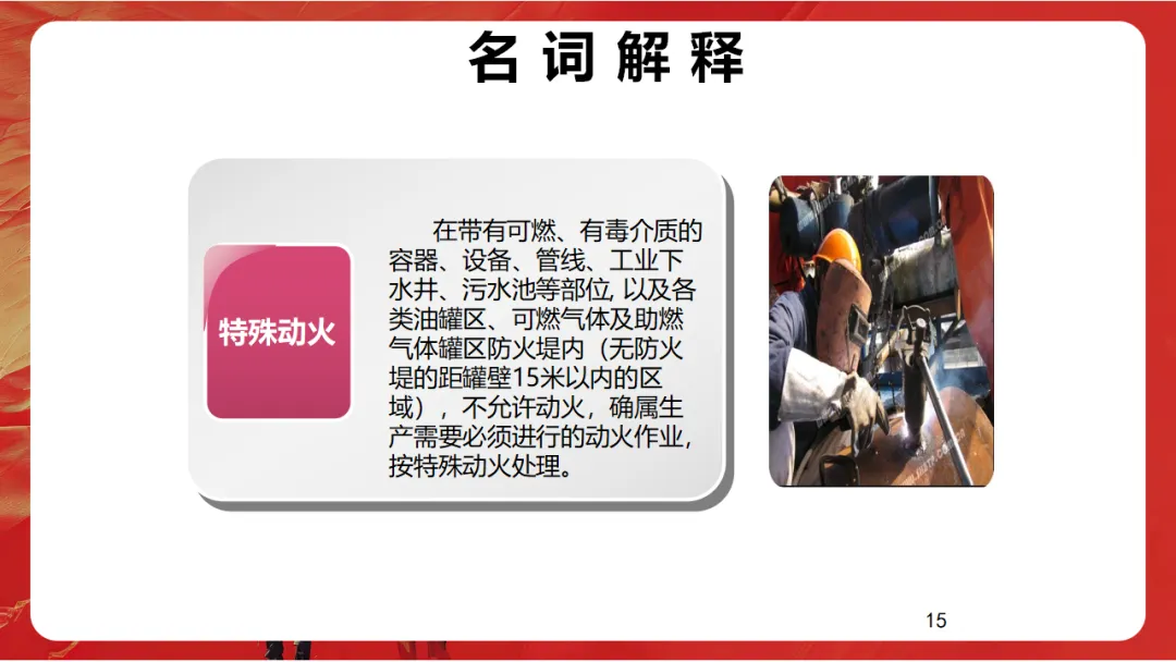 :区别于生产装置的永久性用火(如加热炉),动火作业是临时安排的
