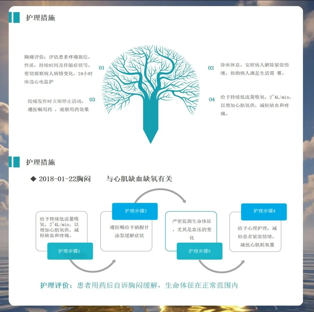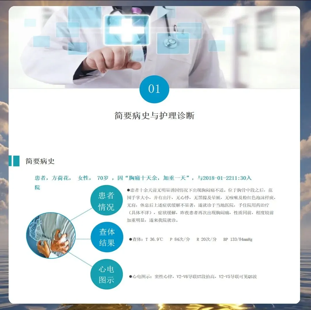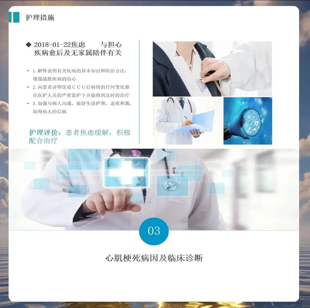 沟通在护理中同样发挥着重要作用。心梗患者通常会有明显的焦虑情绪,这位患者也不例外。我们通过温和的沟通技巧缓解患者的紧张情绪,向患者解释病情和治疗方案,让患者能够配合治疗。同时也与家属进行了充分沟通,了解家庭支持系统,共同为患者康复努力。