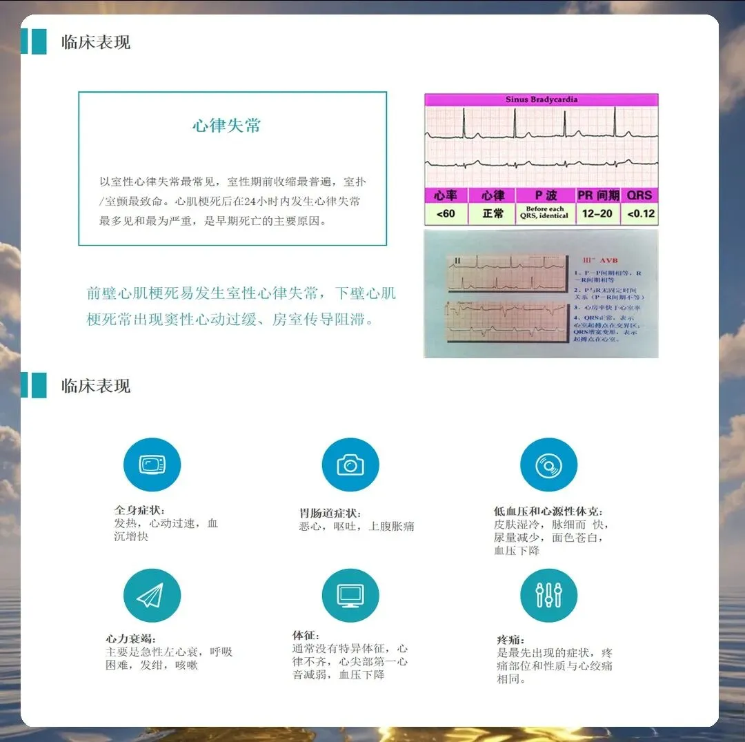 在临床护理工作中,急性心肌梗死的护理是我们时常面临的挑战。最近我参与了一次关于急性心梗患者的护理查房,通过这次学习,对标准化护理流程有了更深入的理解。首先是急性期护理要点。心梗发作后的黄金时期需要绝对卧床休息,减少探视避免情绪激动。同时要严密监测心电、血压、血氧饱和度变化。建立静脉通路时要选择大号留置针,以便急救给药。持续低流量吸氧可以改善心肌缺氧,减轻胸痛症状。这些看似常规的操作,每一步都关系到患者的生命安全。