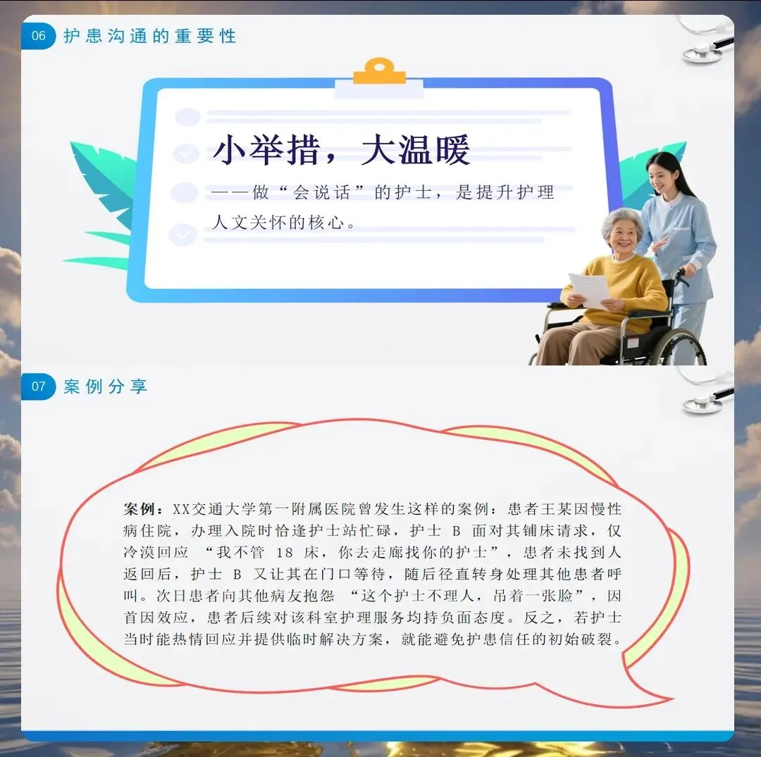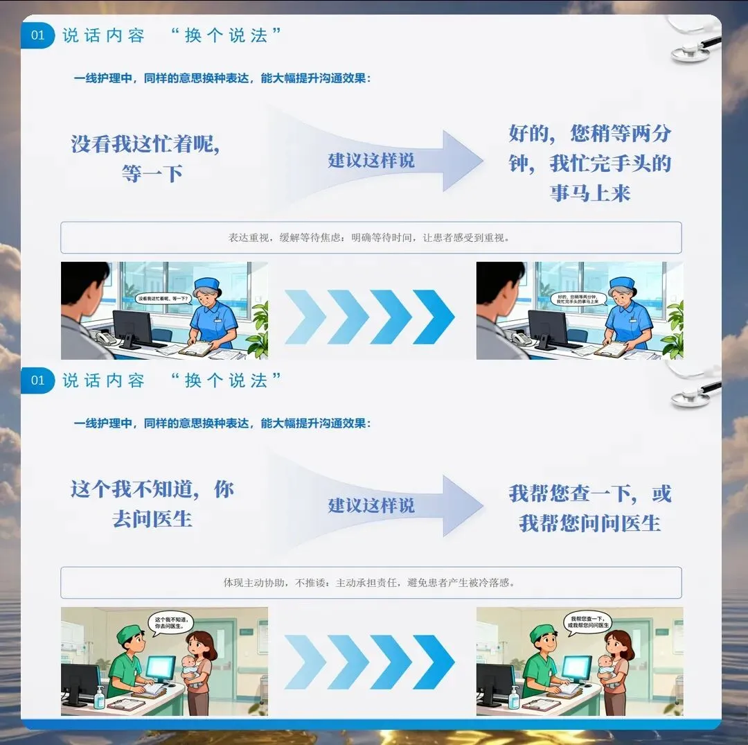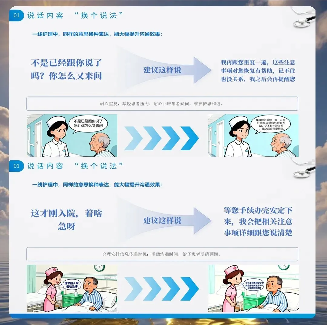 在日常护理工作中,我们每天都要和很多患者打交道。有的患者配合度高,沟通起来很顺畅;也有的患者情绪激动,甚至对我们产生误解。其实很多时候,问题不在于我们做了什么,而在于我们是怎么做的。沟通这门学问,看似简单,实则深奥。