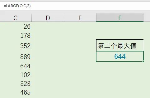 第一个参数直接选中C列,参数“2”代表第二个最大值。
