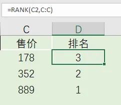 「=RANK(D2,D:D)」