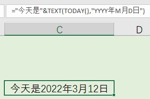 「="今天是"&TEXT(TODAY(),"YYYY年M月D日")」