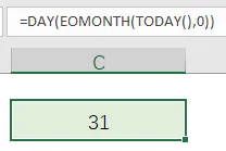 「=DAY(EOMONTH(TODAY(),0))」