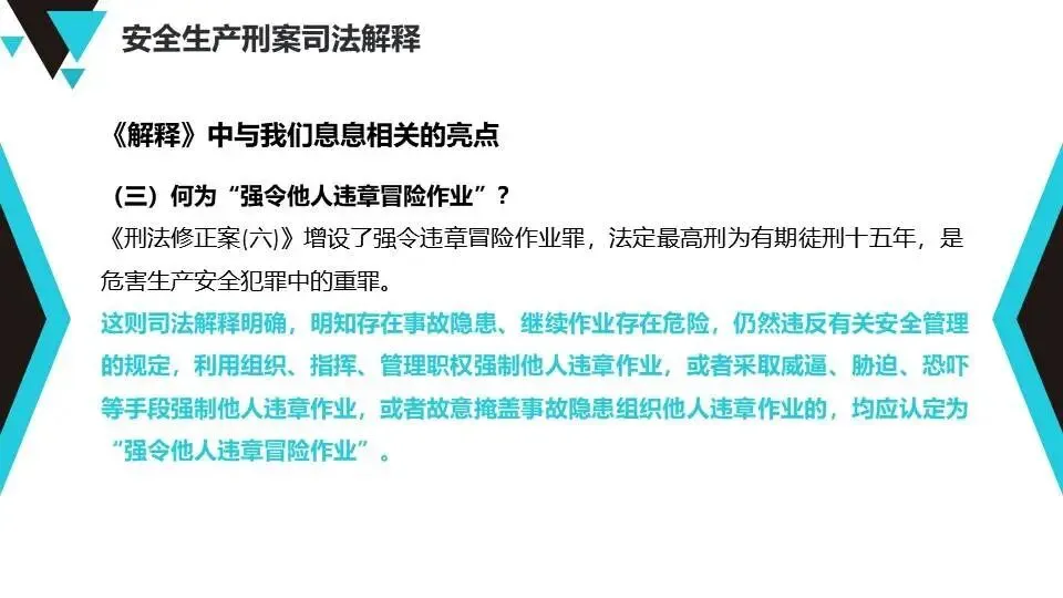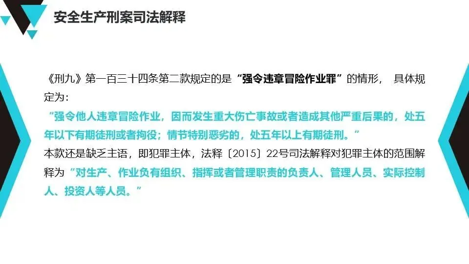 安全生产刑事司法解释:解读“两高”关于危害生产安全犯罪的司法解释,明确重大责任事故罪、强令违章冒险作业罪等14种罪名,强调入罪标准(死亡1人、重伤3人或损失100万以上)及从重从轻处罚情形。