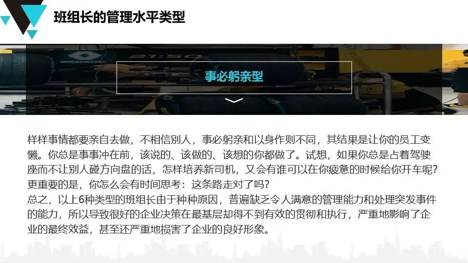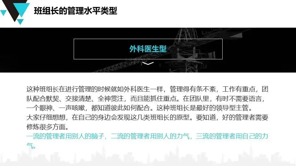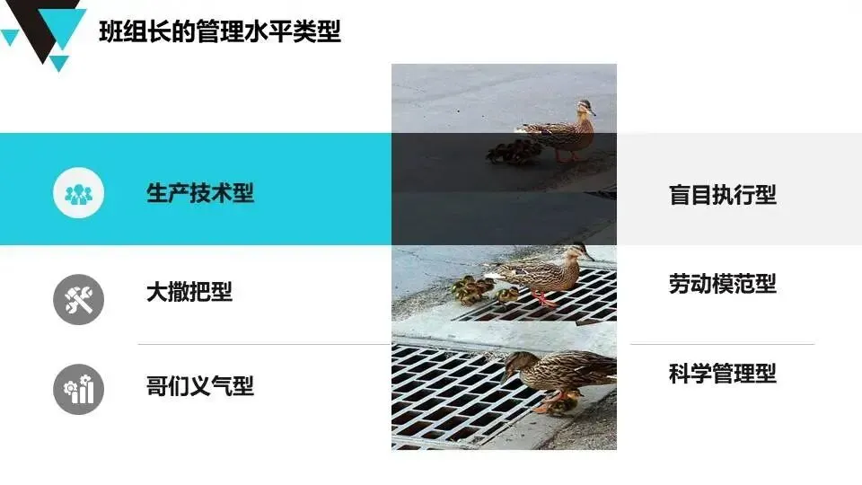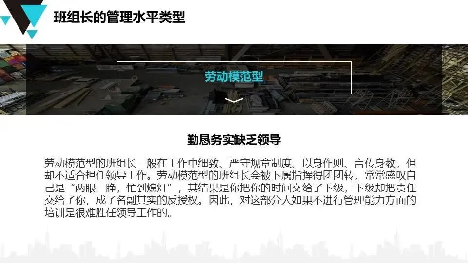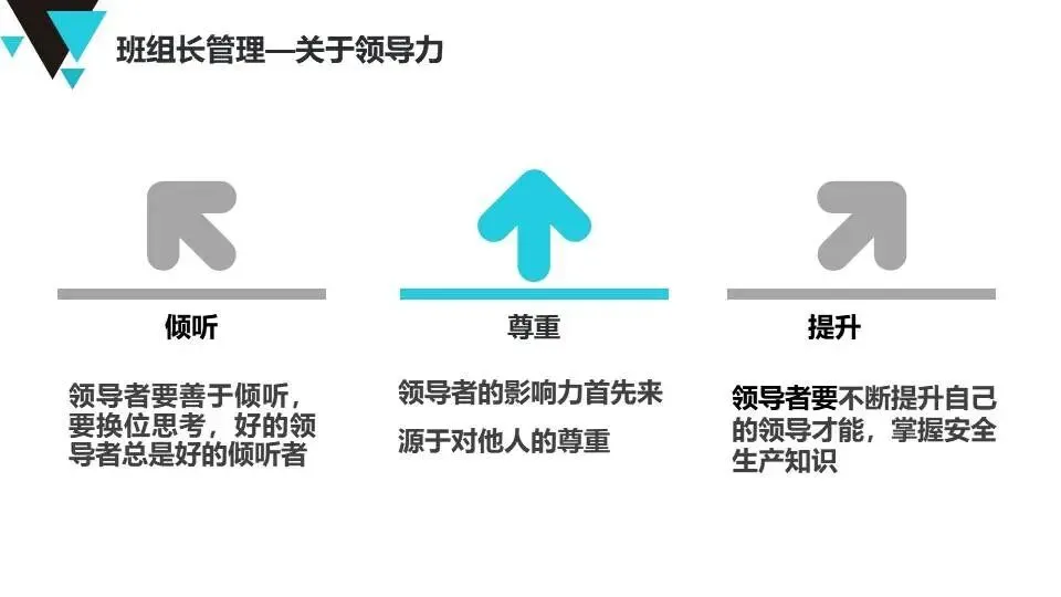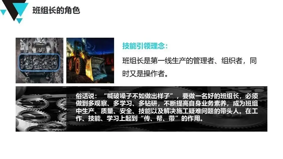 班组长安全角色认知:明确班组长作为“兵头将尾”的职责,要求具备思想、技术、管理三方面素质,强调技能引领、刚柔并济的管理风格。