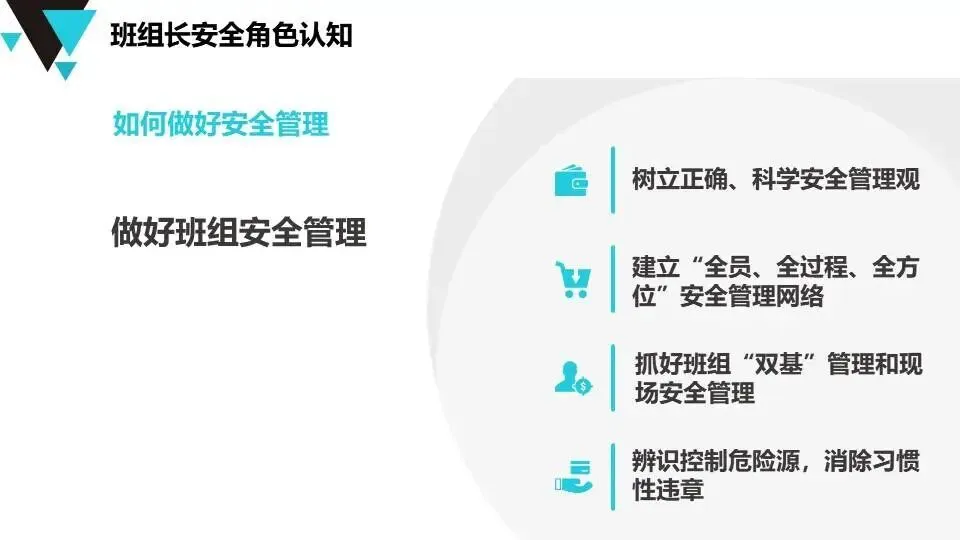 安全管理人员培训课程--班组长,核心内容包括五大模块: