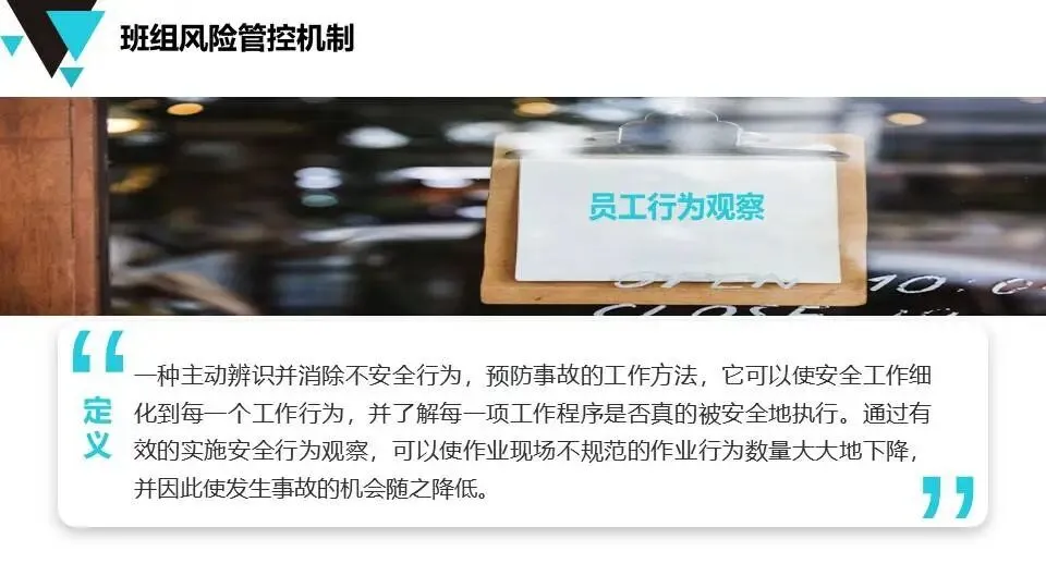 班组基础和现场安全管理:涵盖班前班后会技巧、安全巡检“四三二一”法、员工行为观察(笑脸/苦脸管理)、风险管控机制等内容,强调反复抓、抓反复的管理理念。
