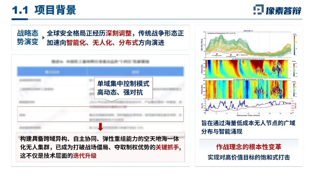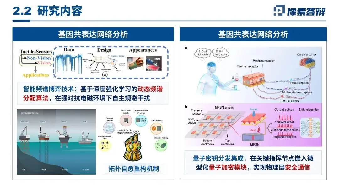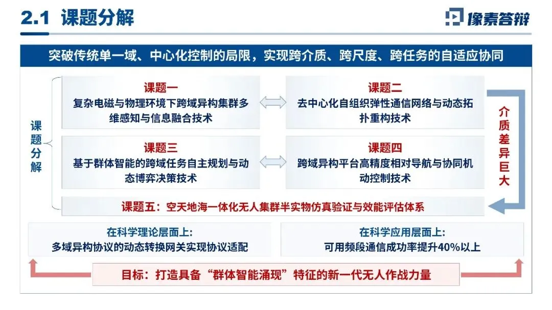 大量结合技术框架图、算法模型图、数据表格等可视化元素,替代大段文字描述,将多模态融合、协同认知等抽象技术点通过图示具象化;同时对核心成果、考核指标、风险等级等关键信息做分类梳理,让评审快速抓取核心数据与技术要点。