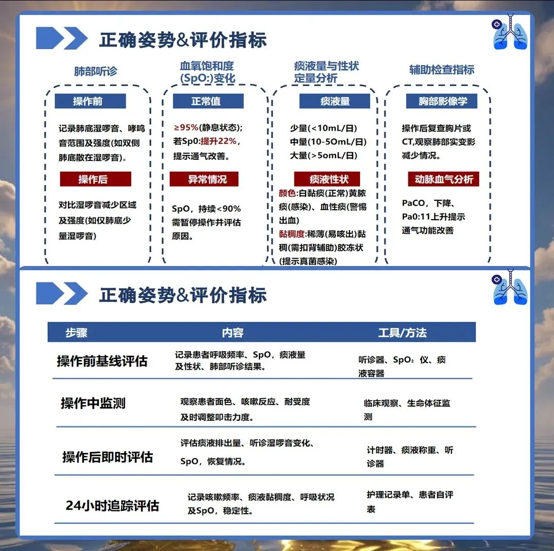操作过程中的观察不容忽视。扣背过程中要密切观察患者的面色、呼吸、血氧饱和度等变化。如果患者出现面色苍白、呼吸困难、血氧饱和度明显下降,要立即停止操作,给予吸氧,并报告医生。同时要观察患者的痰液排出情况,记录痰液的颜色、性质、量。如果痰液呈鲜红色或伴有大咯血,要立即停止操作,采取紧急止血措施。对于不能有效咳痰的患者,可以配合吸痰操作,保持呼吸道通畅。