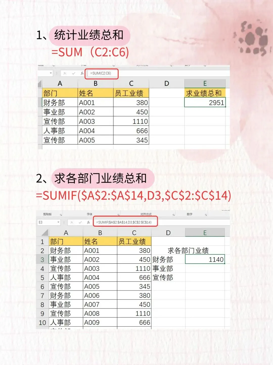 1️⃣ 统计业绩总和:SUM