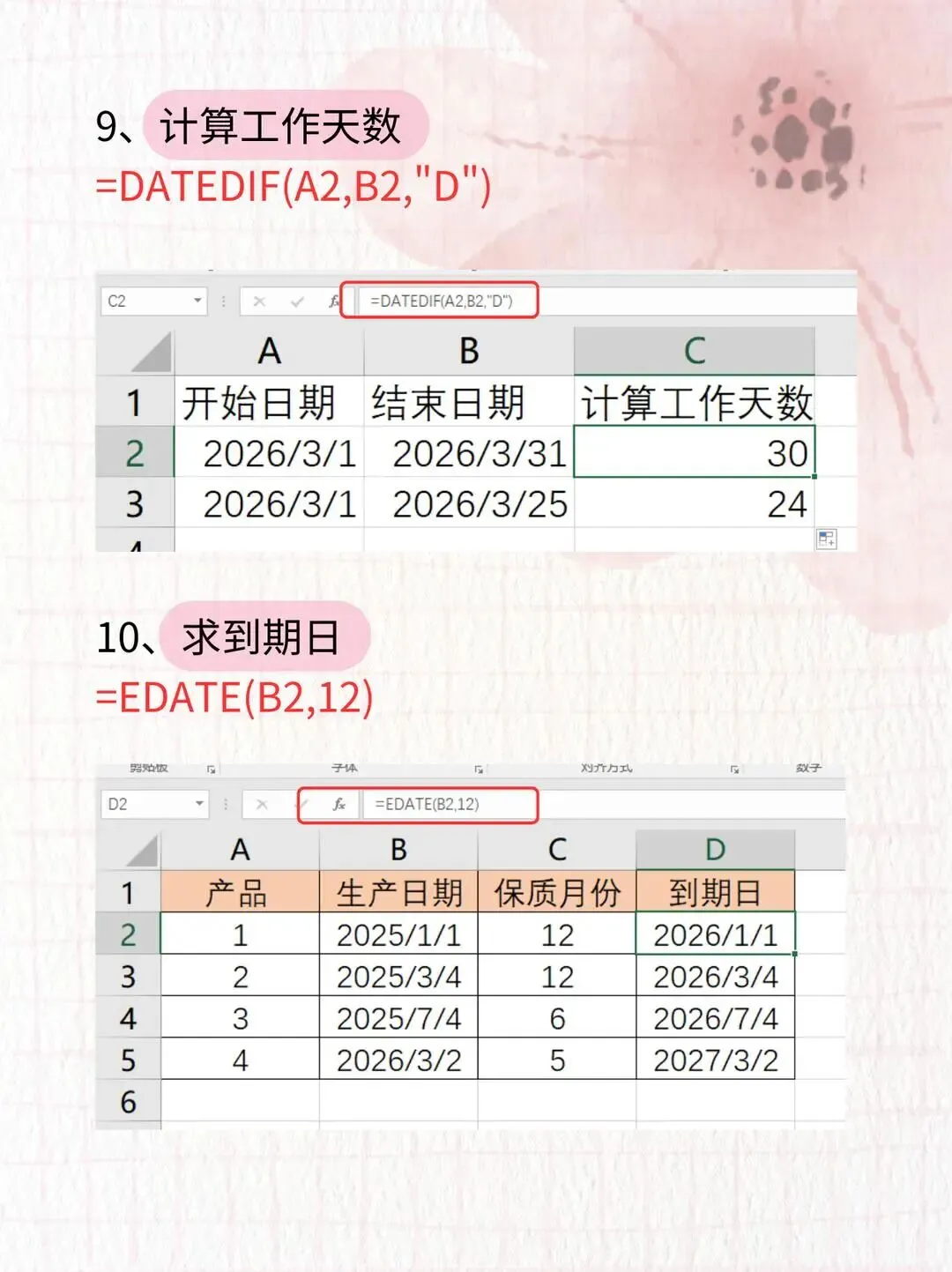 场景:算合同到期日、产品保质期到期日公式:=EDATE(B2,12)👉 B2 是开始日期,12 就是加 12 个月,自动算出 1 年后的日期,再也不会算错啦!