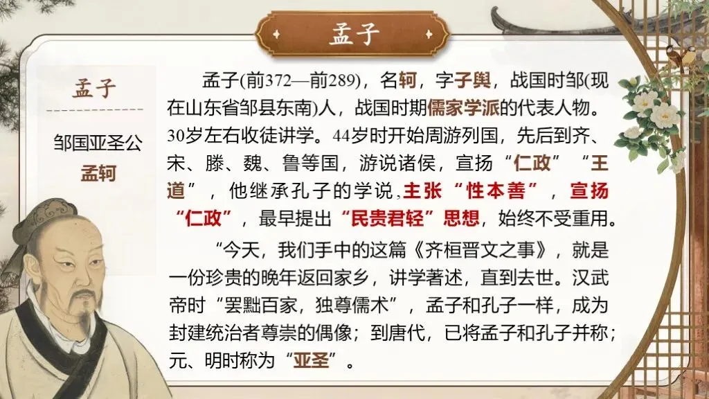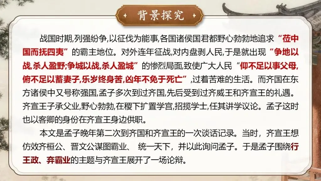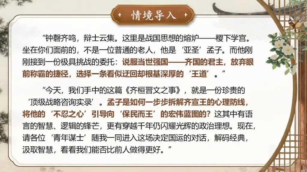>【教赛PPT模板】高一必修下《齐桓晋文之事》(免费分享)
