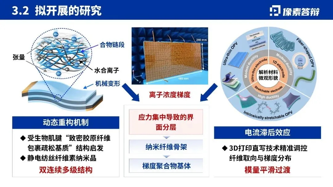 拟开展的研究将聚焦动态应力场下离子溶剂化结构演变,发展多物理场耦合下的离子输运本构模型。同时,受生物肌腱结构启发,通过3D打印直写技术精准调控静电纺丝纤维素纳米晶的双连续多级结构,实现模量平滑过渡与离子浓度梯度,进一步推动柔性忆阻器性能突破。