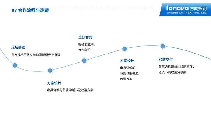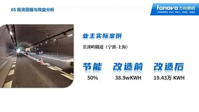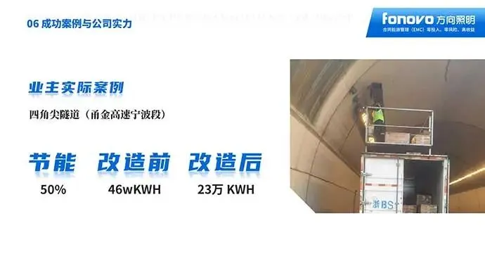 一般来说生产企业是以销售产品来赚钱的,但是他们不同,他们不用客户出钱,自己免费贴产品跟人工去安装,正常一个隧道如果用电是100万一年,他们的能做到节约电费50万,而且这50万他们还带客户一起分,这样的案例确实是能打动不少客户的,基本是无本生意不说,还能赚钱,这样的商业头脑让我赞叹不已,这样好的方案更加是需要一个好的PPT来体现的。