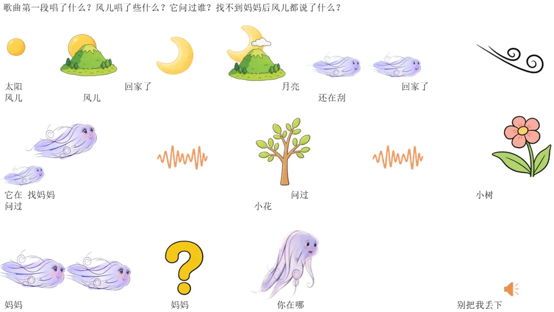 2. 风儿找不到妈妈,到处找,还唱歌找妈妈。