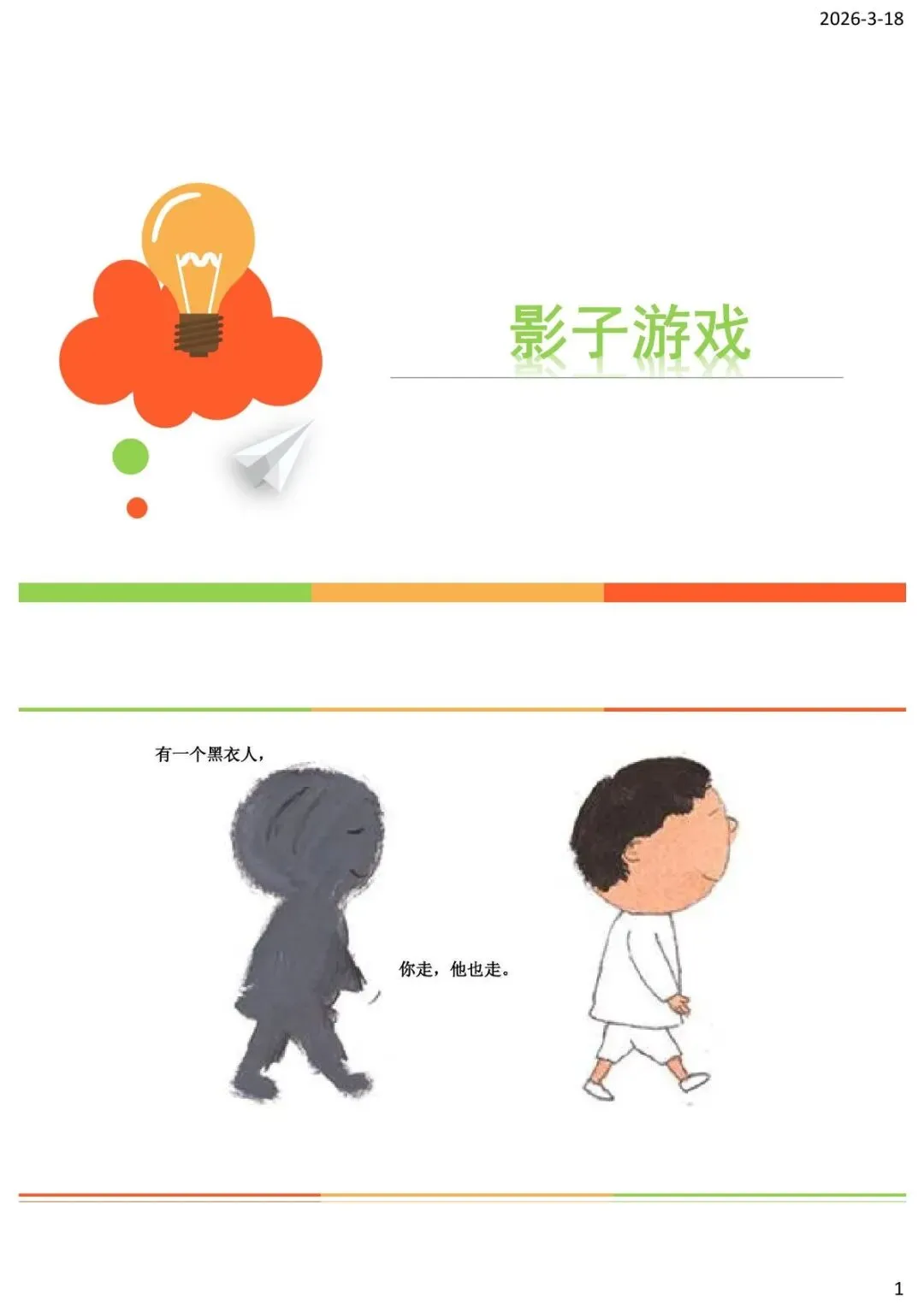 “没错,它就是——你的影子啊!今天,我们就来学习新活动——影子游戏!你们喜欢影子吗?”