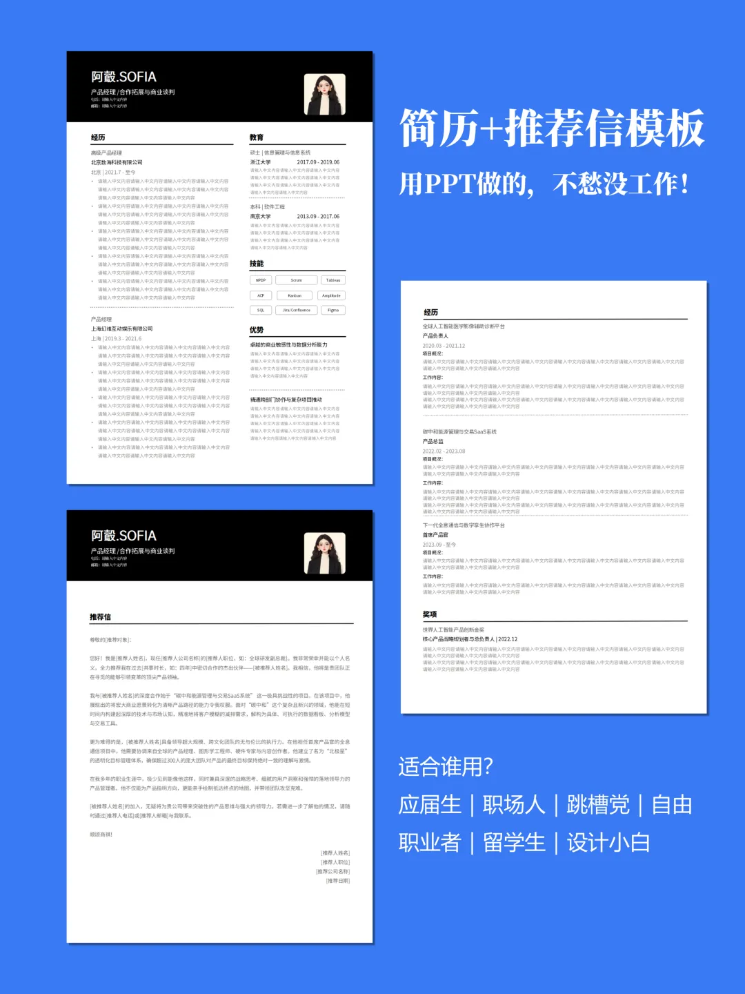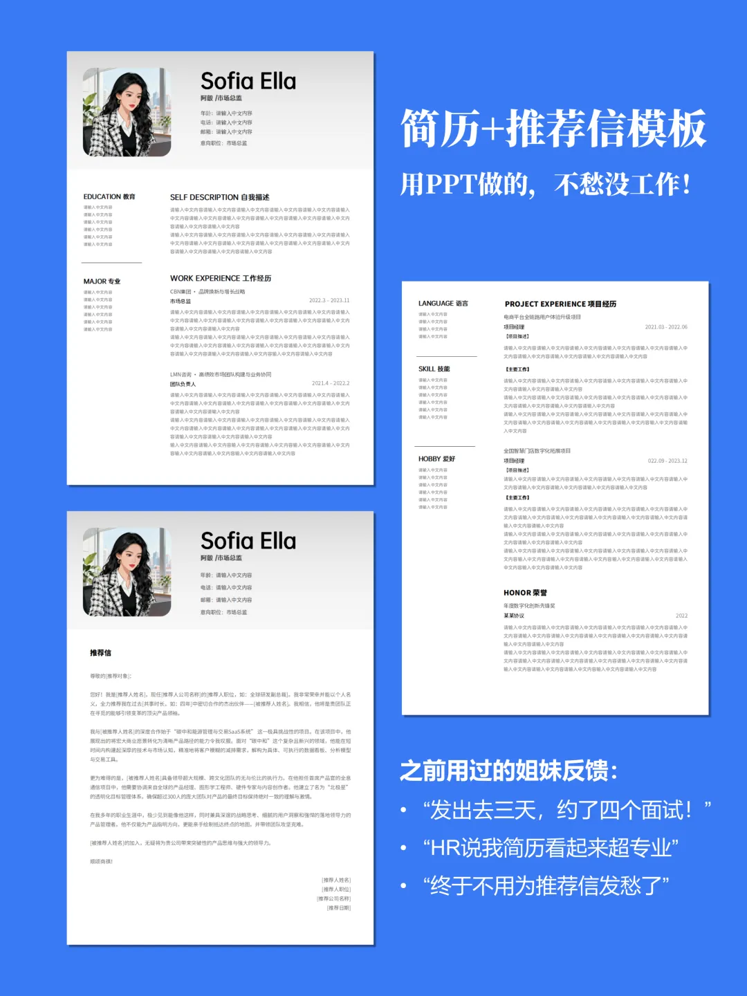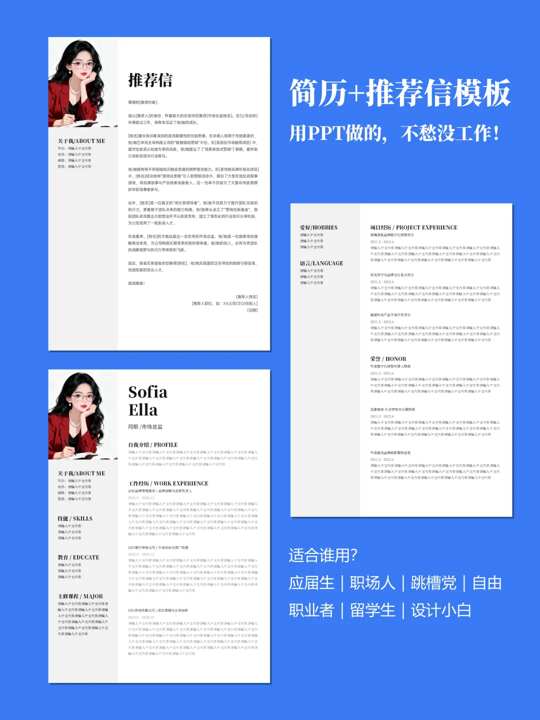 ✅ 简历推荐信全都有一套模板=简历+推荐信+作品集页,面试要的全配齐,不用东拼西凑