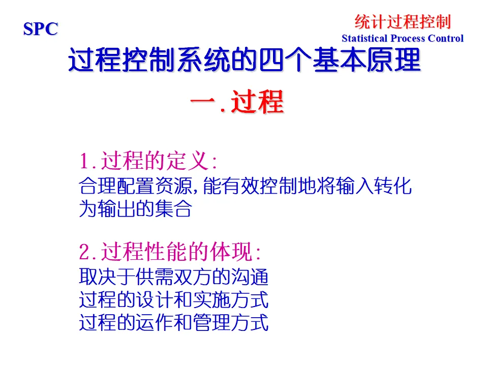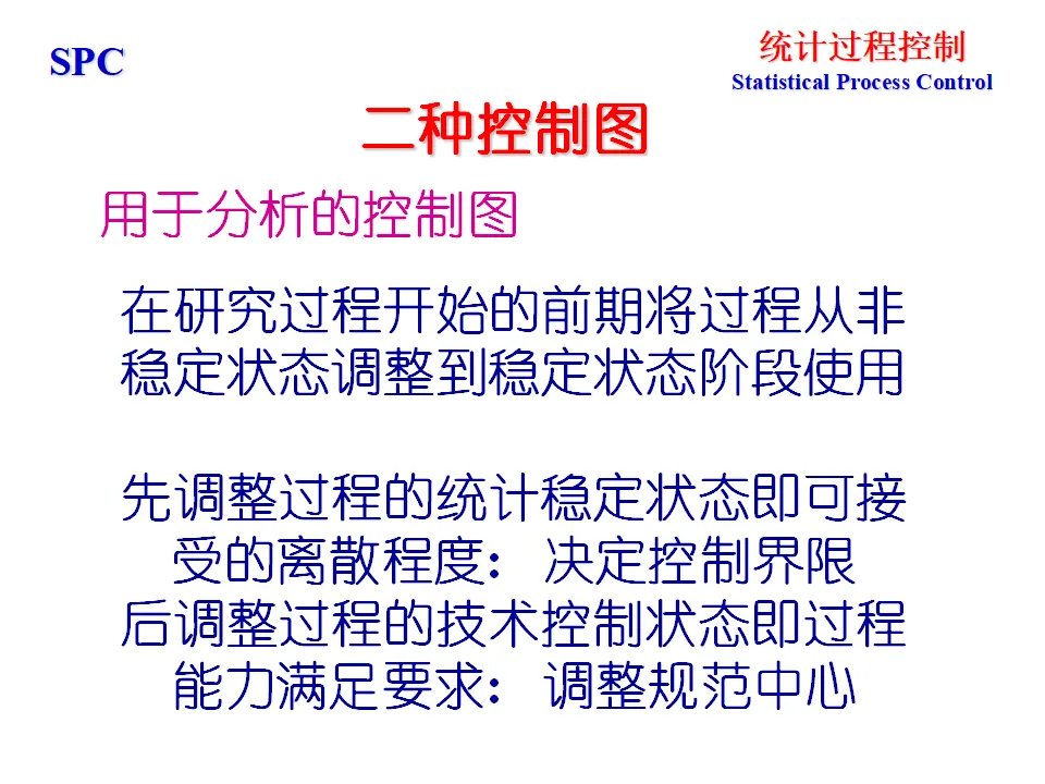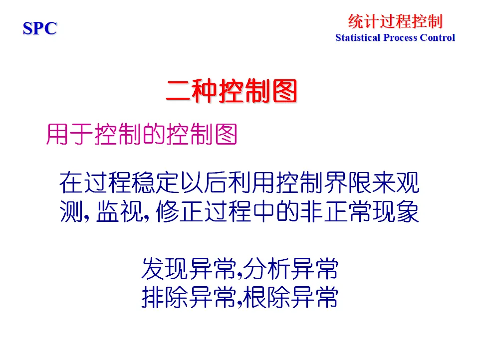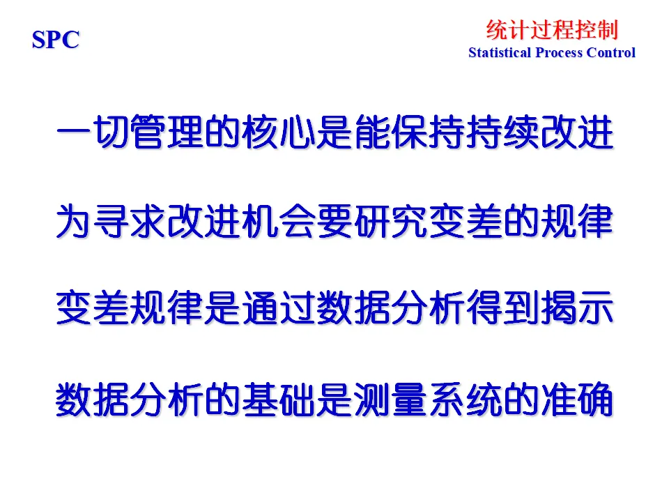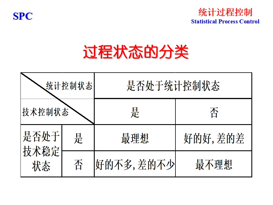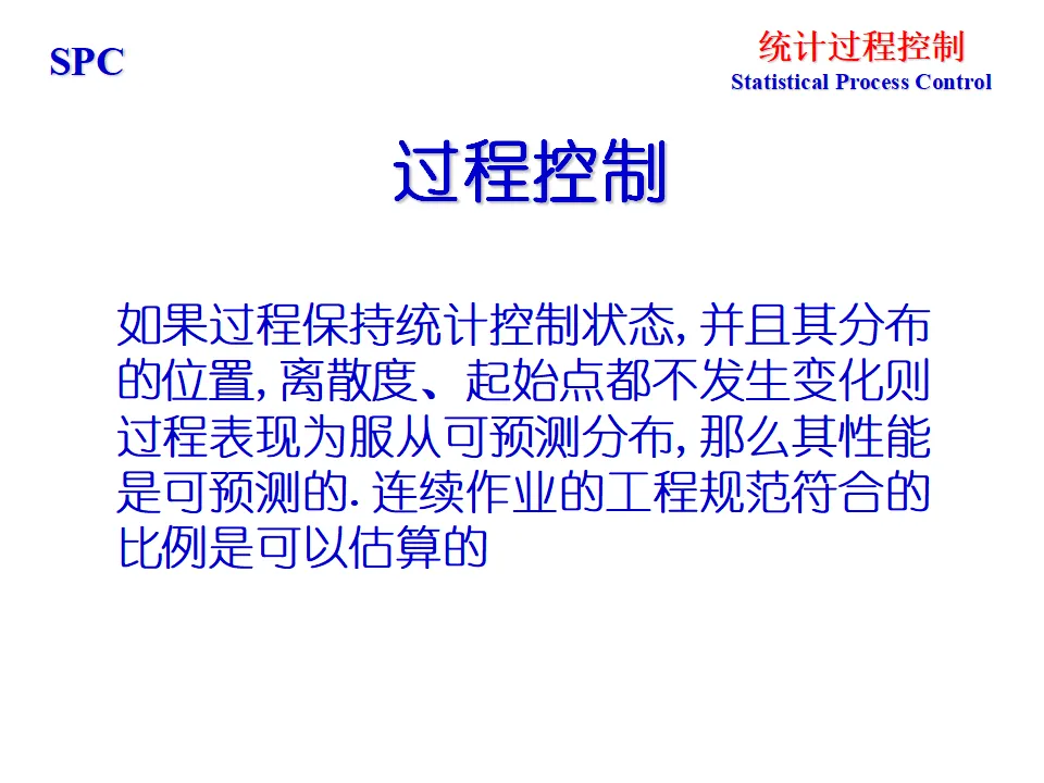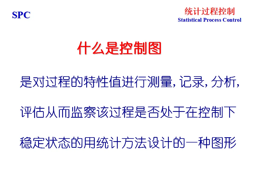 SPC就是应用统计技术对过程中的各个阶段进行监测和评估,及时发现和修正偏差,从而来保证过程满足要求的均匀性和稳定性。