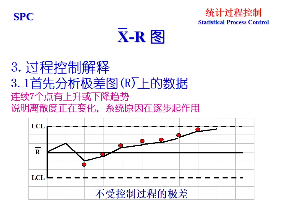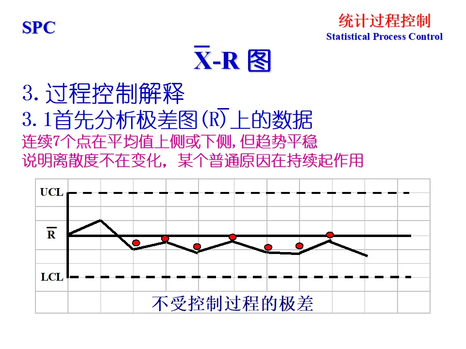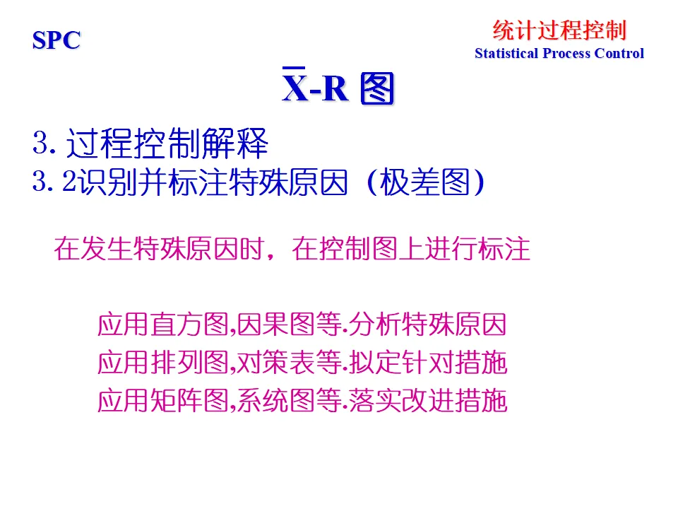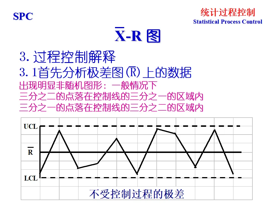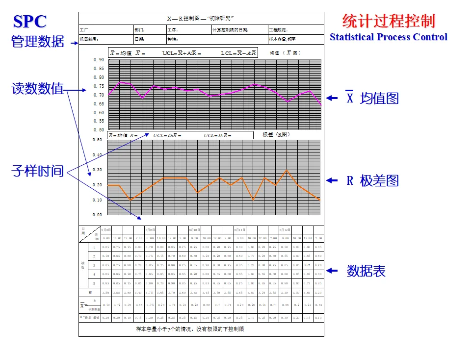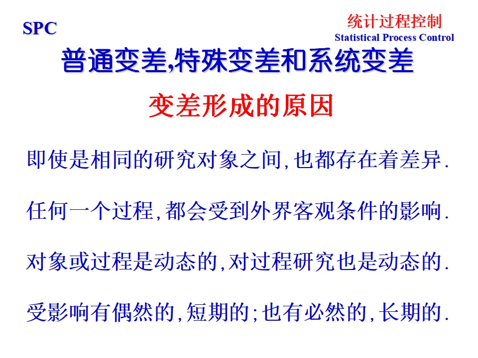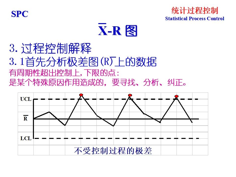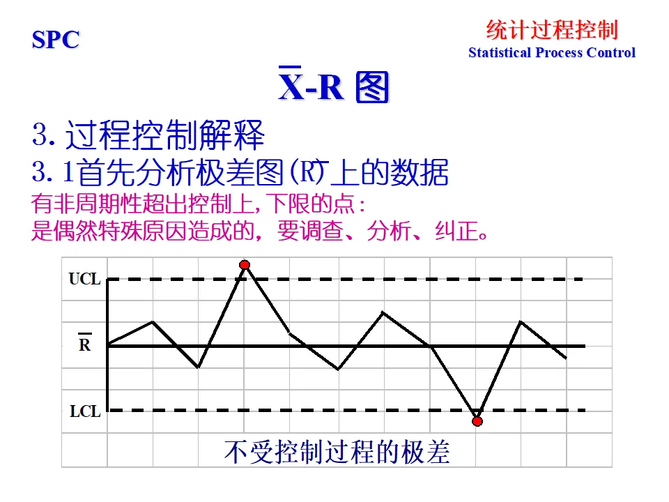 SPC就是应用统计技术对过程中的各个阶段进行监测和评估,及时发现和修正偏差,从而来保证过程满足要求的均匀性和稳定性。