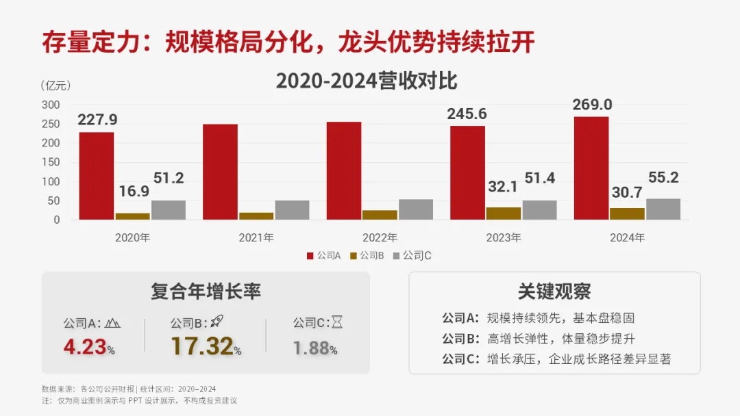 让老板不用看财报,3 秒看懂格局、趋势与差异。重点不在于行业研究,而是商业逻辑 + 专业版式 + 高级可视化,汇报、方案、路演都能直接复用这套思路。