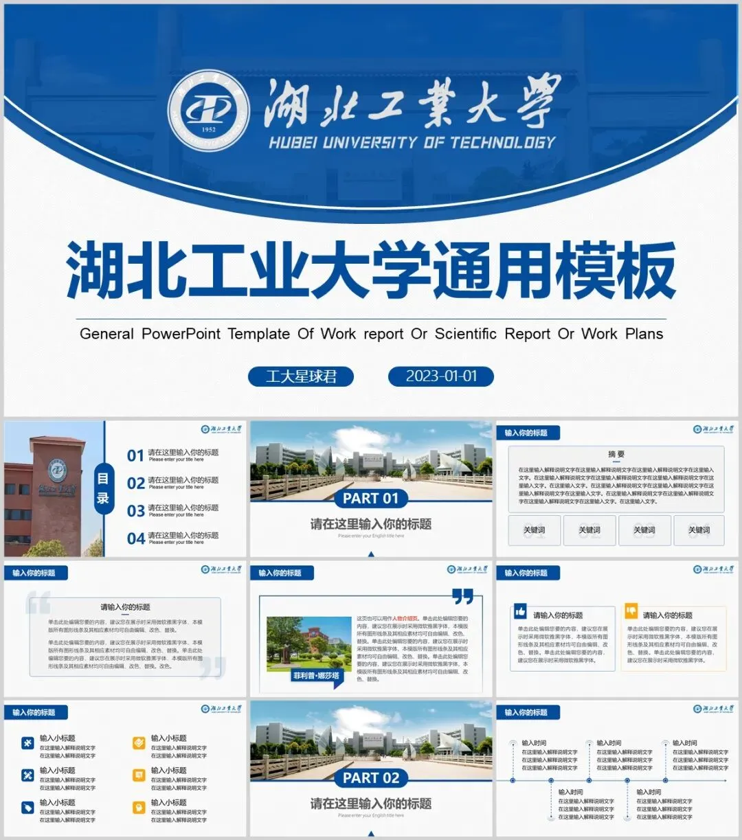 “湖北工业大学”PPT模板来了~