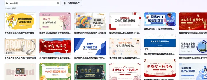 插图模板库:数万套 PPT 专属插图模板,支持关键词搜索,快速定位适配款式