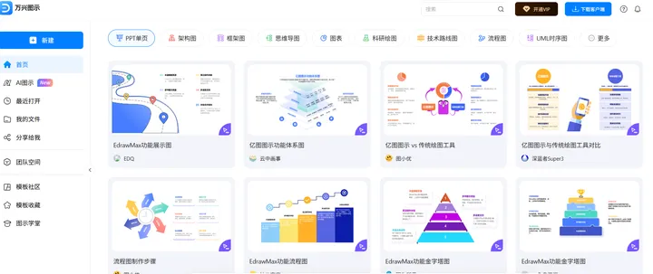 全类型绘图:支持流程图、UML 图、架构图、思维导图等 PPT 常用插图制作