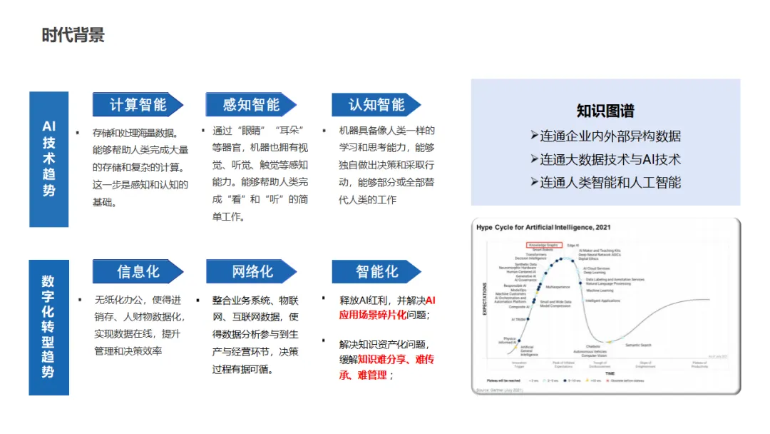 本方案系统阐述了知识图谱在数字化转型中的核心价值与落地路径,提出以知识即服务(KaaS)为架构,连通企业内外部异构数据、打通大数据与AI技术、融合人类智能与人工智能,实现从“数据在线”向“知识资产化”的跨越。方案指出,知识图谱通过将隐性经验显性化、分散知识系统化,能够有效解决知识难传承、难管理、应用场景碎片化等痛点,为组织带来降本、增效、创新的三重价值。在建设方法论层面,方案提出“六步建设法”作为核心实践框架:知识建模遵循层次化、网络化、可维护原则,自顶向下与自底向上循环迭代;知识抽取融合流水线与联合学习技术,实现实体、关系、事件的自动化识别;知识管理涵盖本体融合、实例融合与流程融合,通过异构数据库组合与知识溯源保障数据一致性与可解释性;知识计算从非结构化到结构化逐层演进,集成机器学习模型、工作流、因果模型等执行规范;知识应用聚焦可视化、检索、推荐、问答四大场景,通过知识库增强提升算法精准度与可解释性;知识演化则融合图结构推理与表示学习,支持时序预测、小样本学习与规则联合训练,推动知识体系持续迭代。在行业应用层面,方案展示了知识图谱在营销、金融、地铁、媒资、政务等领域的实践成果:消费品营销实现从解释性洞察到探索性洞察的跃迁;金融信用评分融合宽度学习与深度学习,提升反欺诈与信用评估效能;地铁维检修通过车辆故障知识图谱,将检护周期从每日一检优化为每八日一检,大幅降低人力成本;媒资领域构建体育与古诗词图谱,赋能内容生产与智能推荐;数字城市则以精准扶贫决策辅助系统为切入点,实现多源数据融合与智能推演。方案最后强调,知识图谱建设需平衡ROI与技术上限,注重人机协同与主动学习,将业务Know-How作为最核心的知识资产,通过端到端的工程能力融入已有IT生态,最终实现从线性增长向指数级跃迁的行业应用展望。