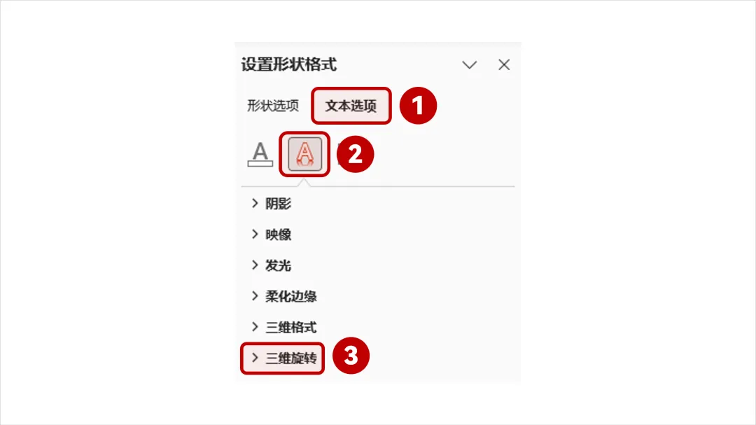 今天来分享一些PPT中常见的立体字效果是如何实现的,贪多嚼不烂,今天主要讲以下两种:有一些朋友在设置三维旋转前,会将文本转化成形状格式,设置三维旋转。所以我建议保留文字的文本效果格式,确保三维旋转后的文字依然可编辑。选中文字,右键【设置形状格式】,点击【文本选项】,再进行一系列设置即可。这一步,需要注意将【文本填充】和【文本轮廓】的颜色区分开。如果【文本填充】和【文本轮廓】的颜色一样,那么你就会得到这样的立体字效果。