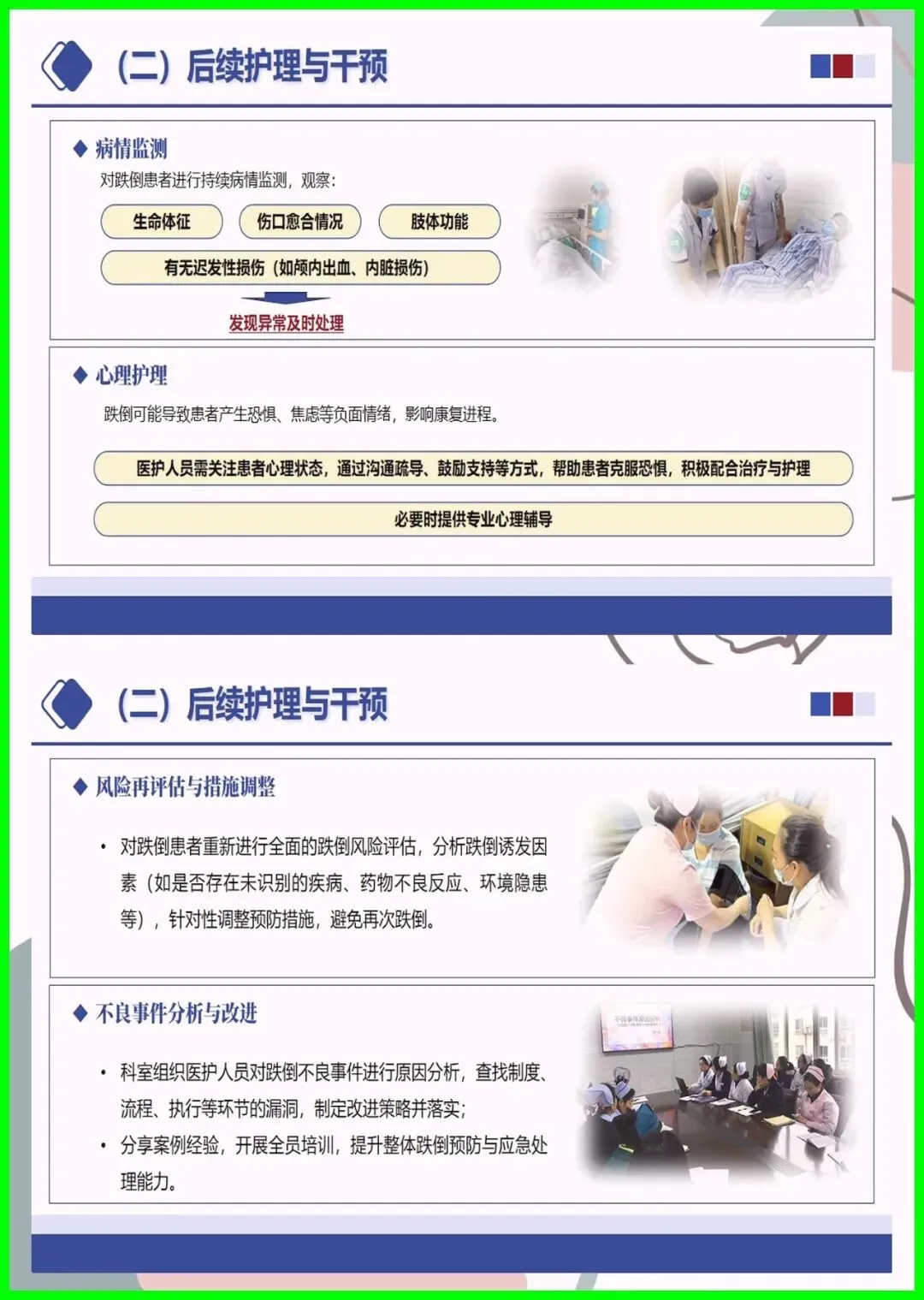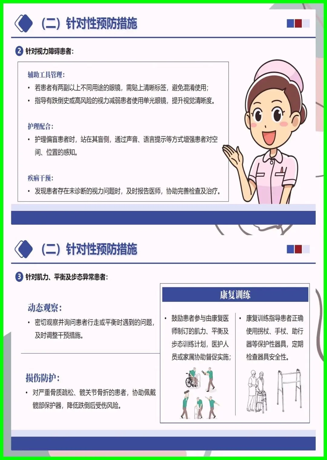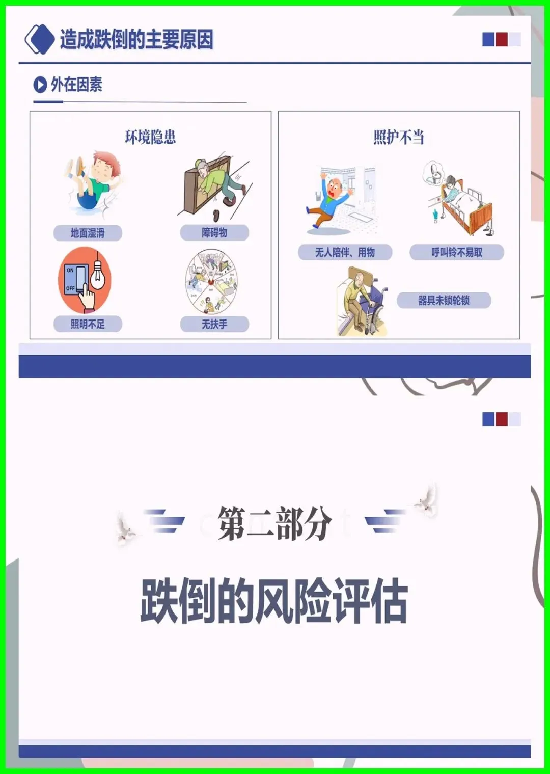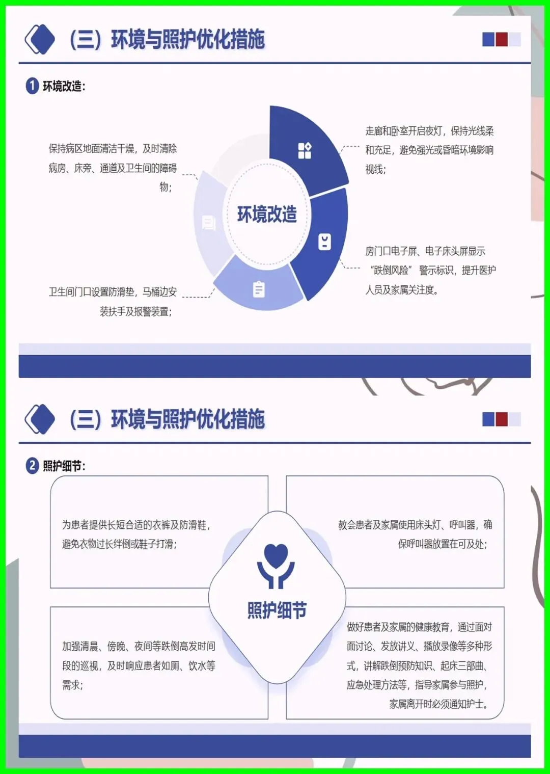 大家好,住院跌倒可不是小事,不仅会造成擦伤、骨折,严重时还会危及生命,更是医院常见的不良事件。尤其是 65 岁以上老人、术后患者、服用降压镇静药的人群,跌倒风险更高,环境湿滑、照明不足也会埋下隐患。其实跌倒可防可控,入院后会做风险评估,低中高风险各有专属防护,比如贴警示标识、专人陪护、优化病房环境。万一不慎跌倒,别着急起身,先护住头部,及时呼救,医护会第一时间处理。做好防跌倒,医患共努力,才能让就医更安心。